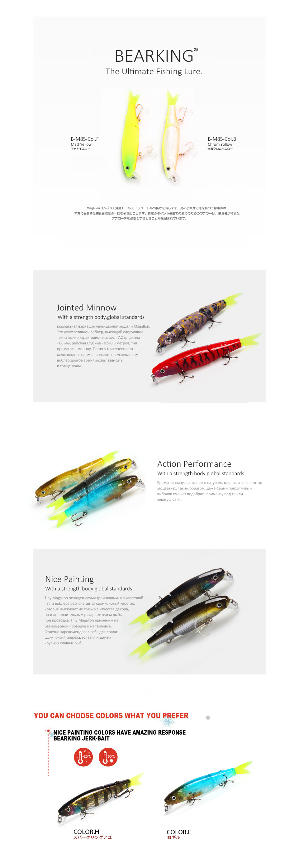 Bearking 2017 good fishing lures minnow,quality professional baits 8.8cm/7.2g,swimbait jointed bait,bearking perfect painting