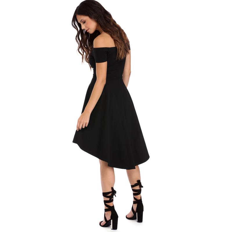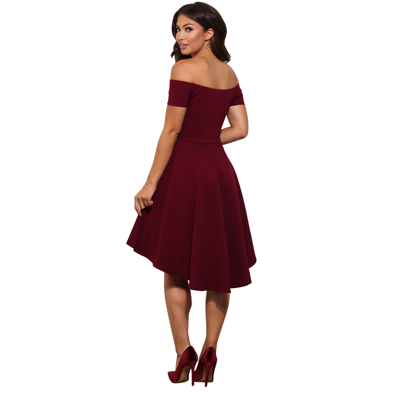 Berydress Elegant Women Plus Size Cocktail Party Skater Dress Off Shoulder with Sleeve Stretchy Burgundy High Low Dresses 2017
