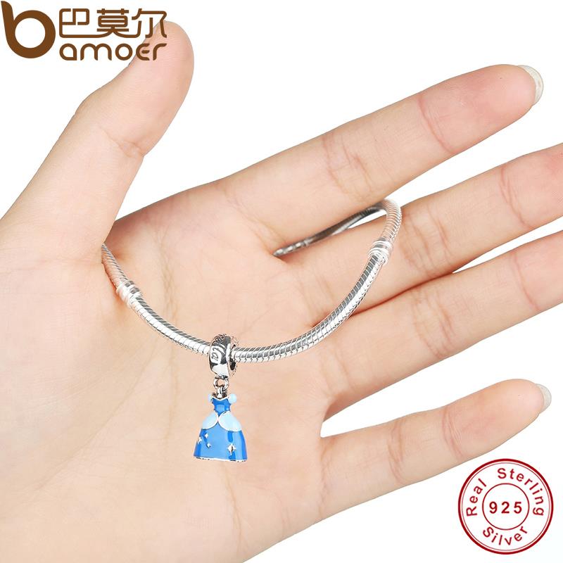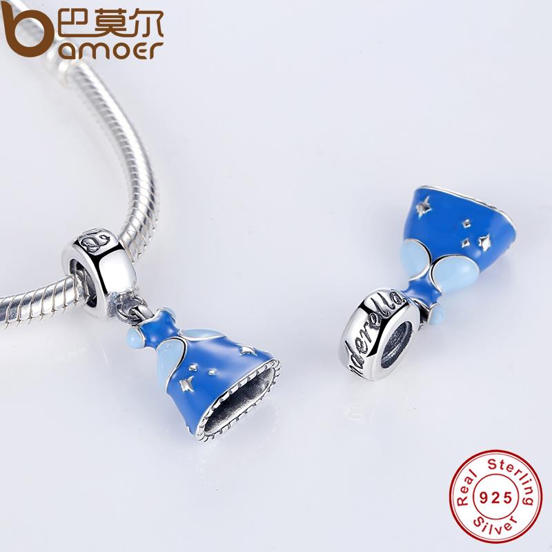 Original 925 Sterling Silver Cinderella's Blue Dress DANGLE Pendant Fit Bracelet Necklace Fairy Jewelry Making PAS156