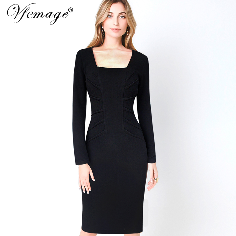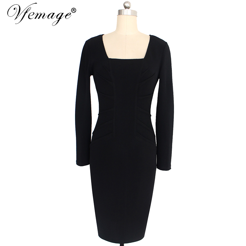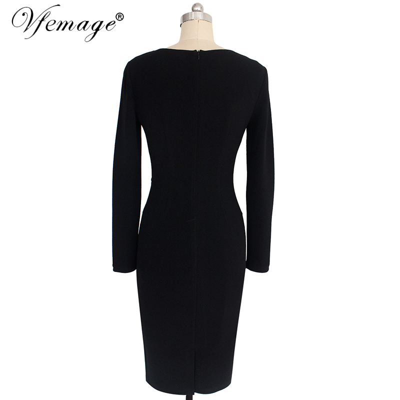 Vfemage Womens Elegant Vintage Winter Spring Ruched Draped Business Casual Wear To Work Office Party Pencil Bodycon Dress 4528