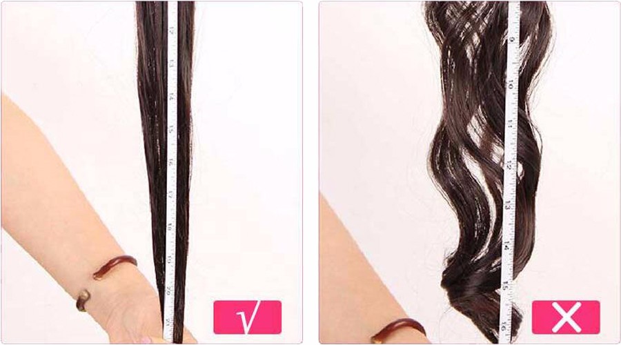 We measure the length of hair when the hair be stretched to straight, the wavy and curl texture hair will be much shorter