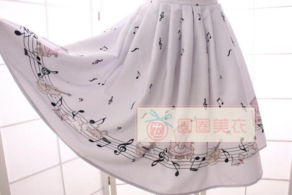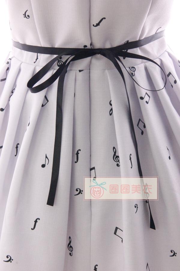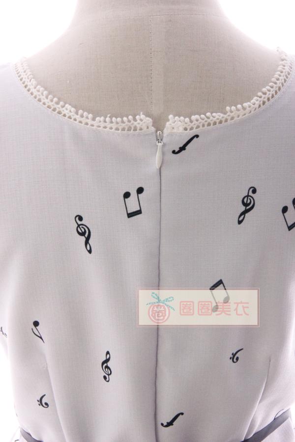 2016 Summer New Mori Girl Dress Sweet Musical Note Printed Short Puff Sleeve Dress for Women