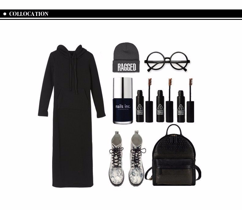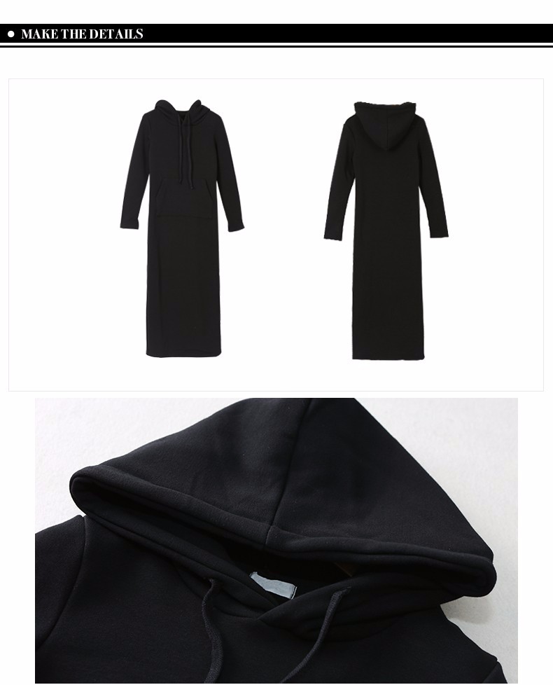 Women gray Casual Hooded Dress Long Paragraph Dress Add a Velvet High Waisted Long Sleeved 2016 Autumn Cotton Winter Dress