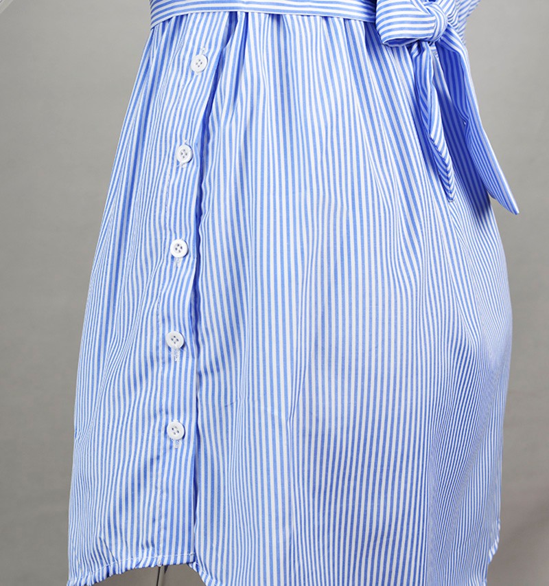 2017 Fashion one shoulder Blue striped women dress shirt Sexy side split Elegant half sleeve waistband OL girls beach dresses