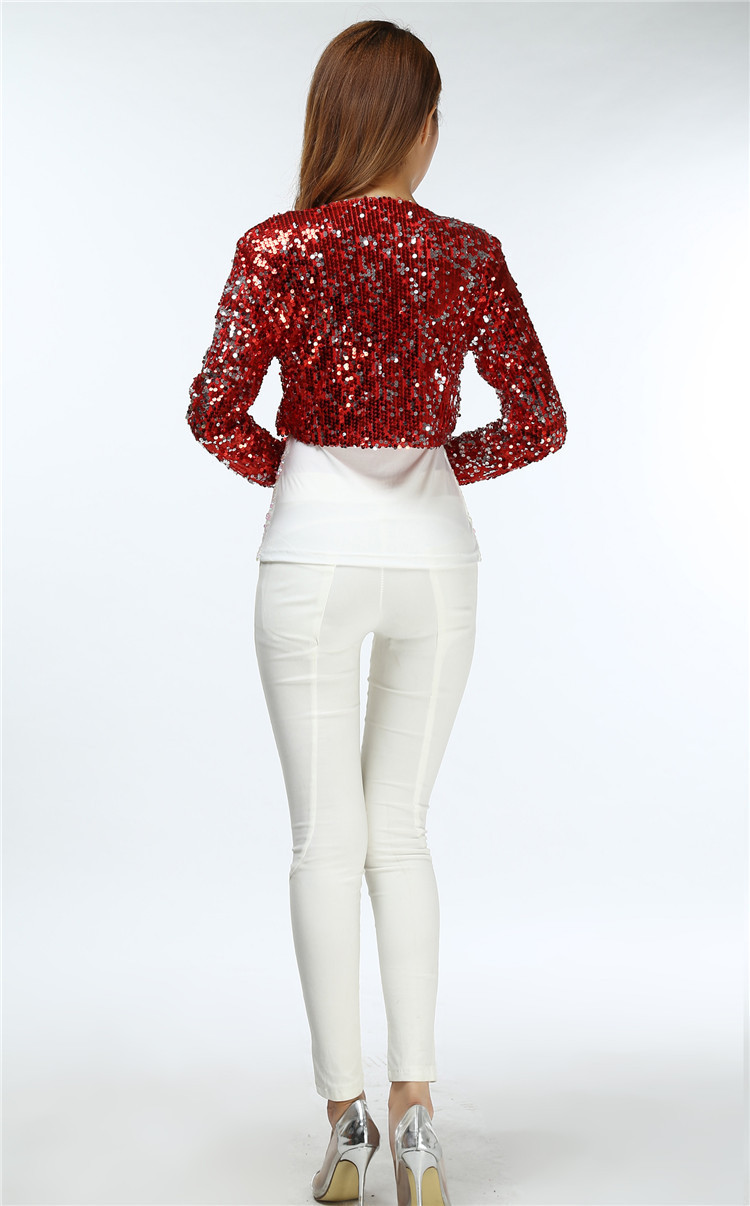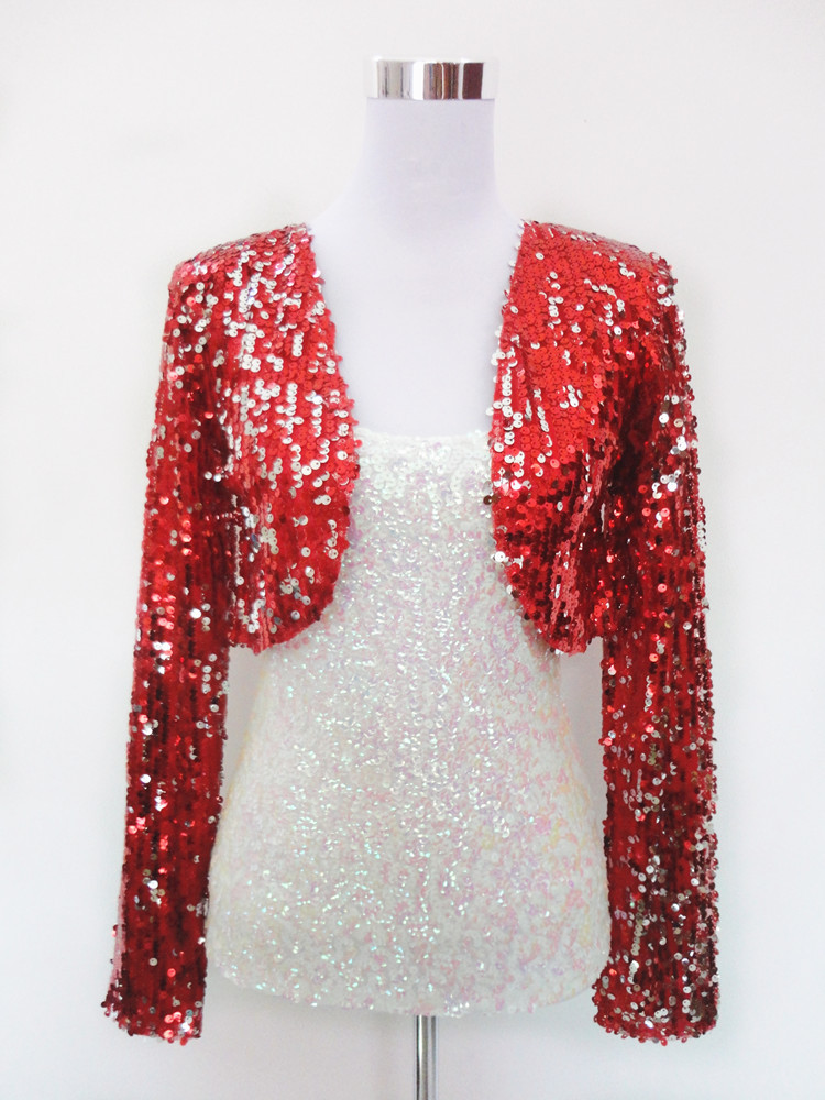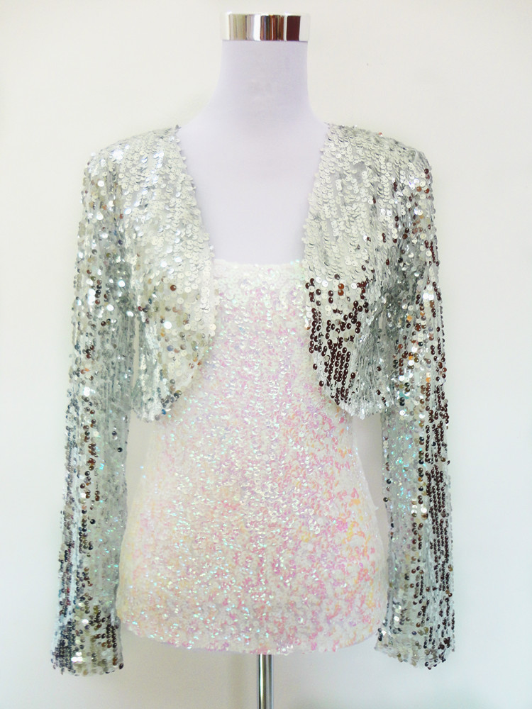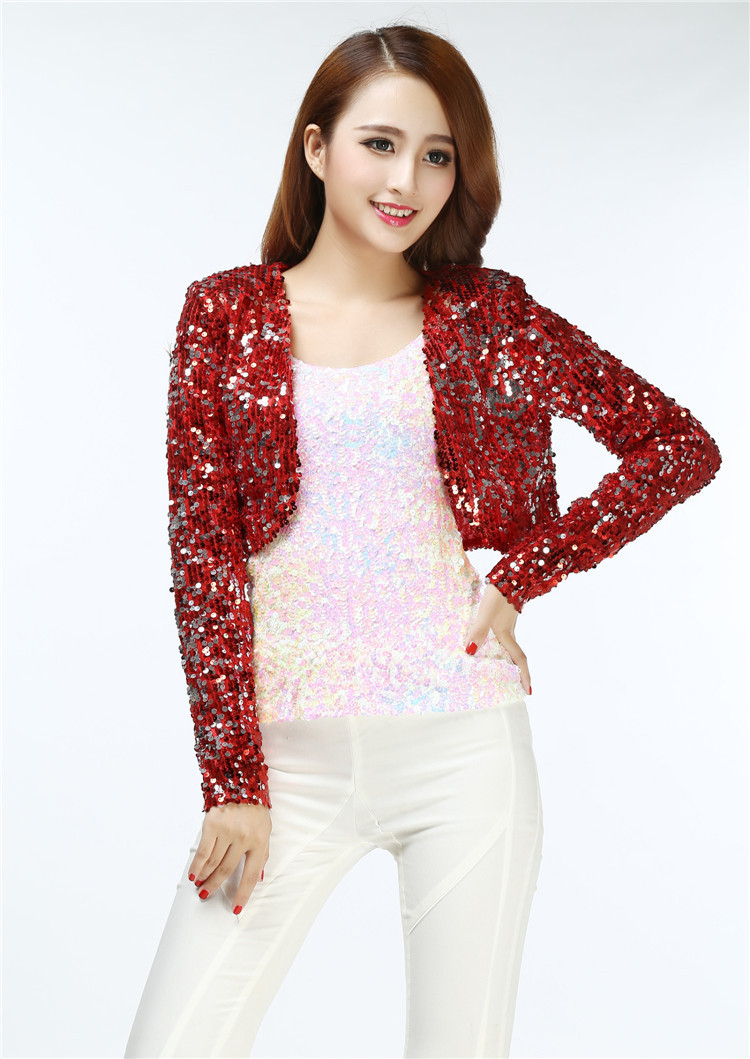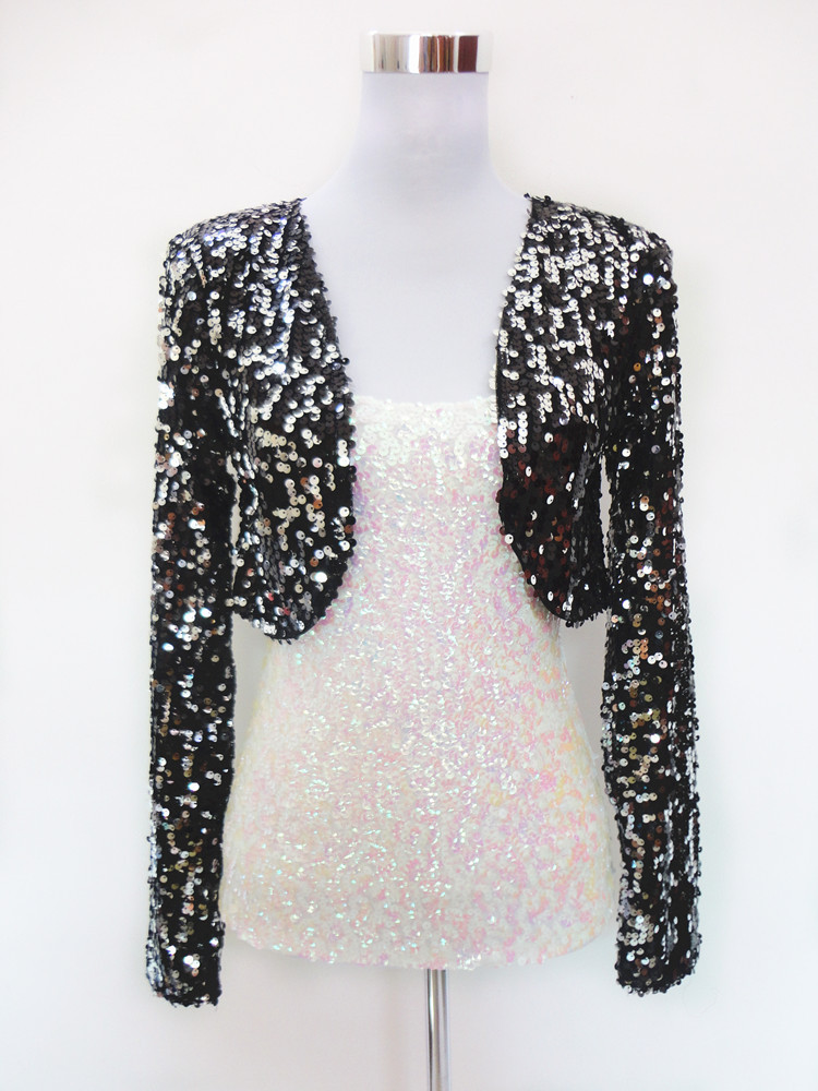 New fashion Women Ds Clubwear Sparkly Sequin Long Sleeve Sexy Shrug Cardigan Jacket Stage Cloth