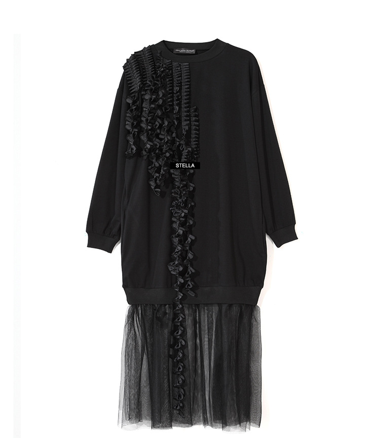 2017 Spring Dress Paragraph Handmade Ribbon with Long-sleeved Stitching Hem Mesh Long Dress
