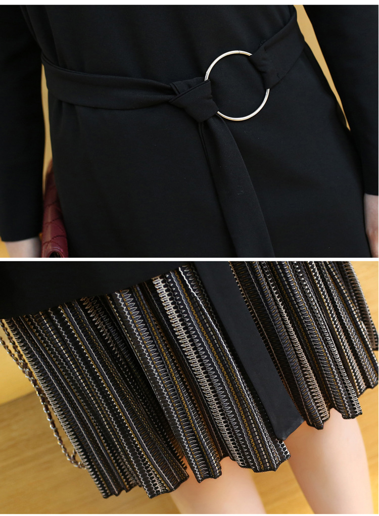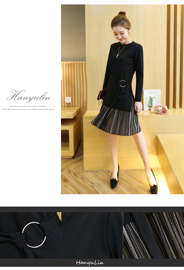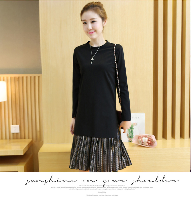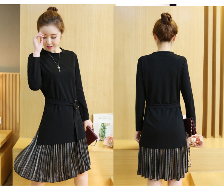 2017 autumun pleated dress women Korean long loose large size long sleeved knitted party dresses two piece dresses female