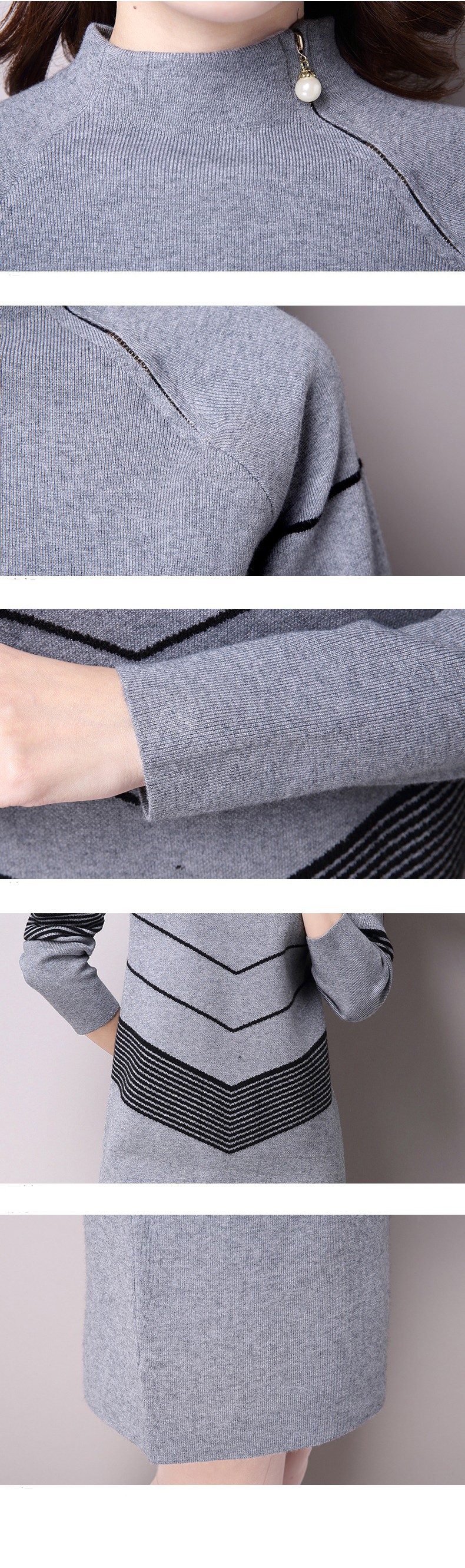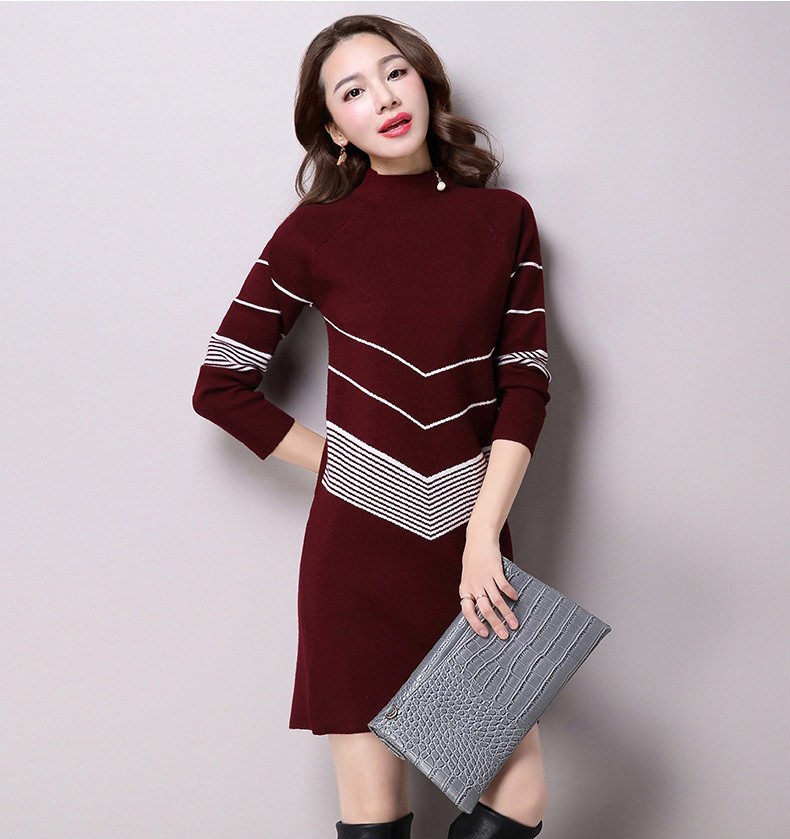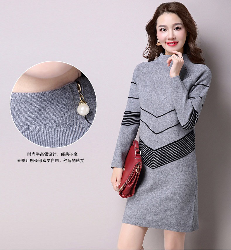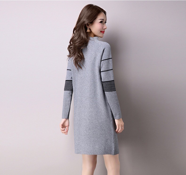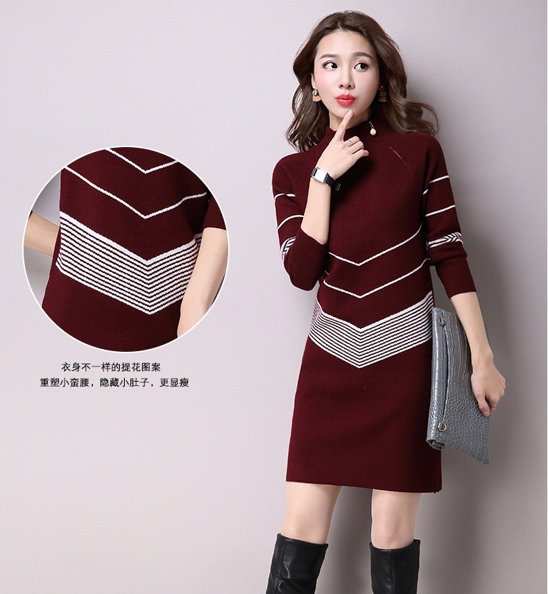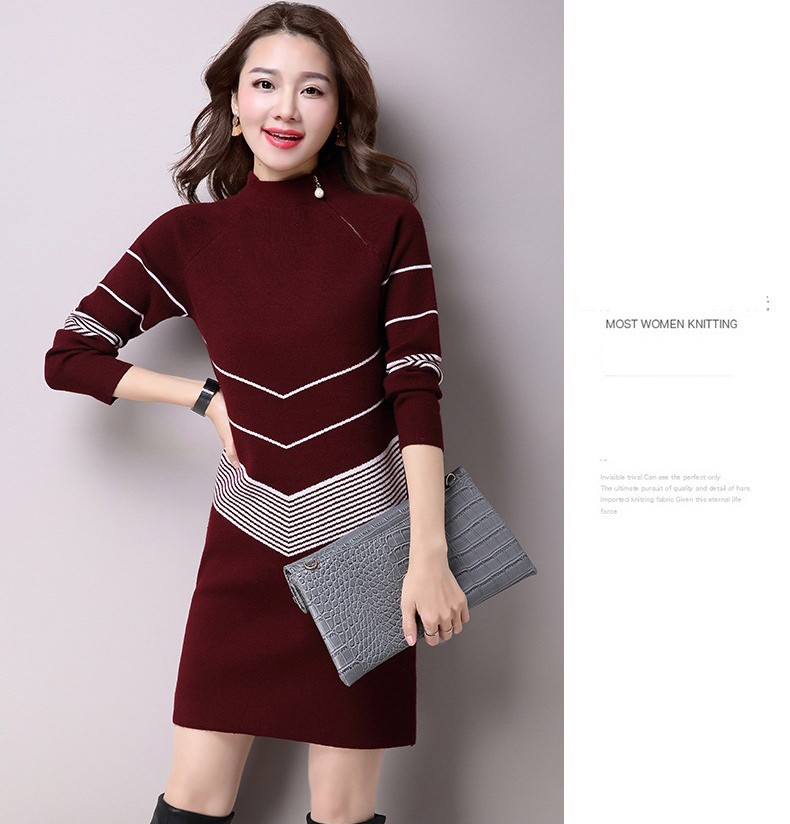 2017 Korean Style Knitted Women Sweater Dress Sweter Mujer Striped Half Turtleneck Long Sleeve Mini Women Sweater