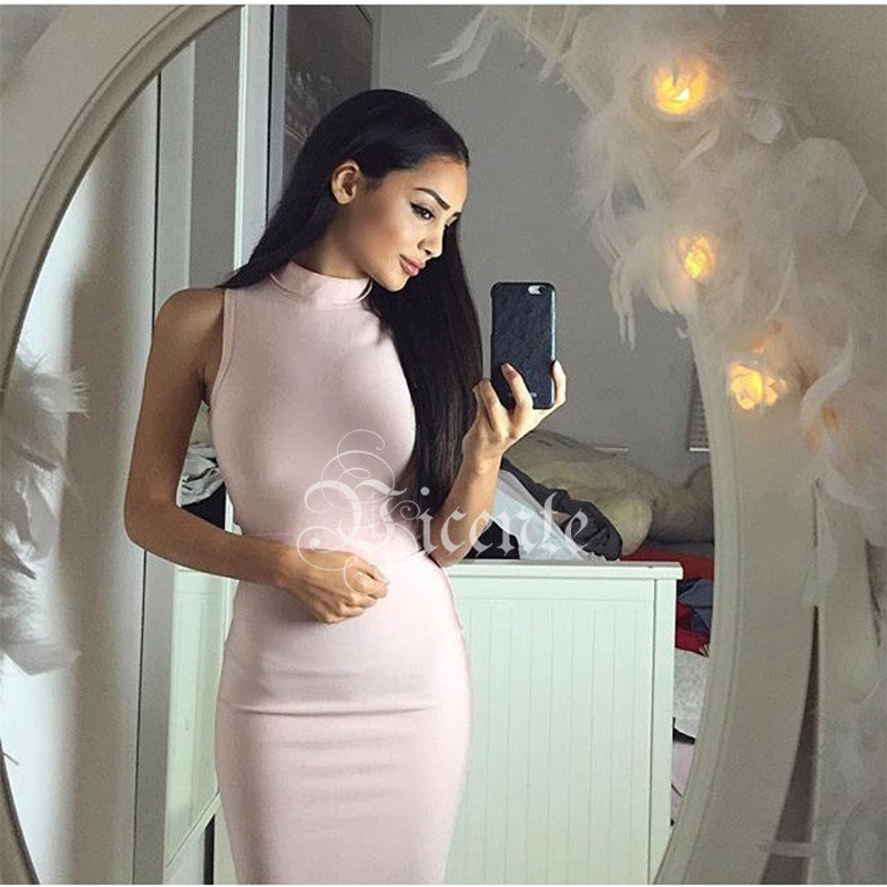 2016 New Free Shipping! Must Have Gorgeous High Neck Over Knee Length Celebrity Party Bandage Dress