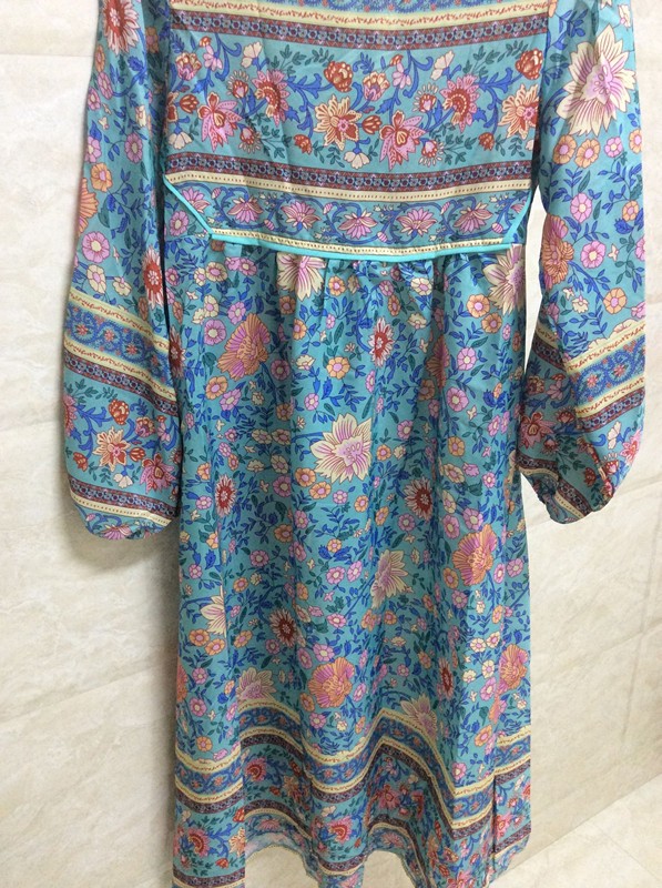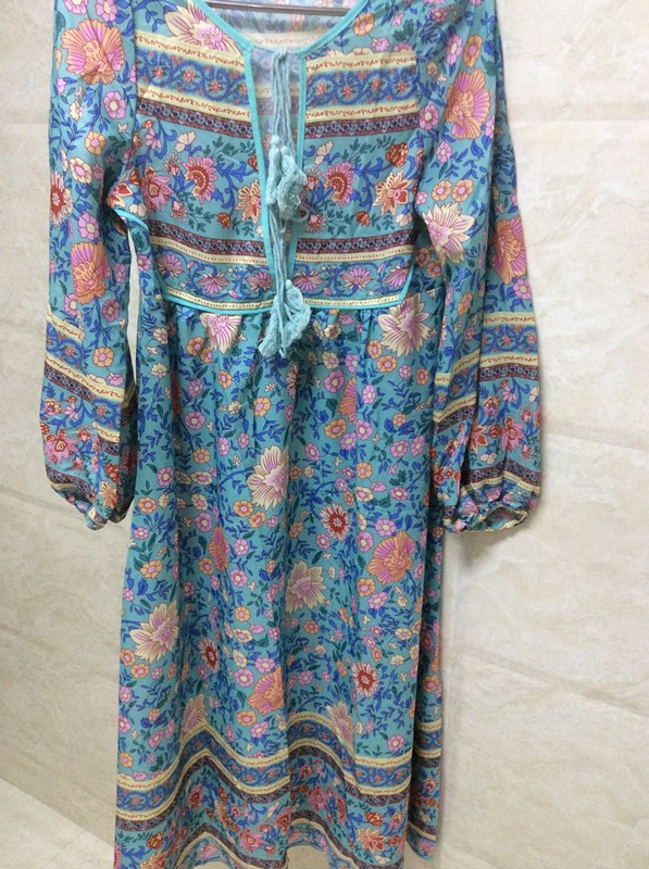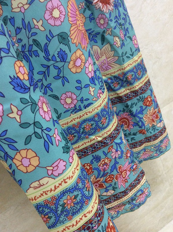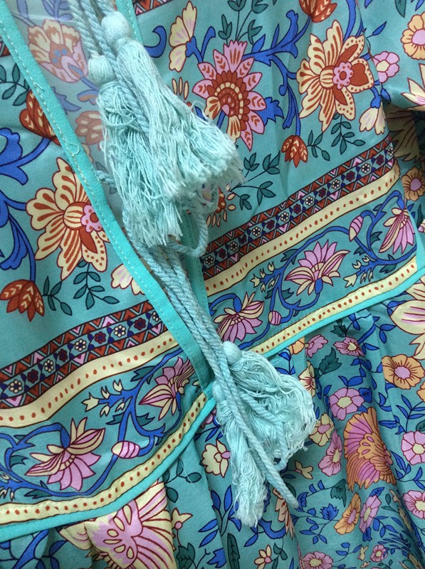 2016 hot sale women\'s tassel irregular print dress bohe style blue long dresses hot printed loose pretty dress V-neck hot dress