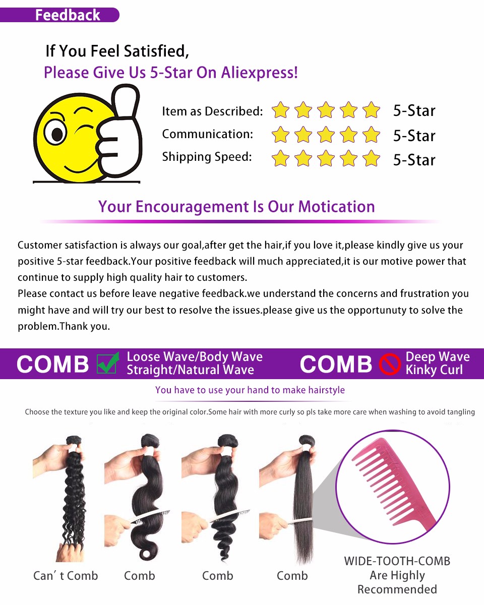 • Human Hair grade: 7A grade Brazilian virgin hair