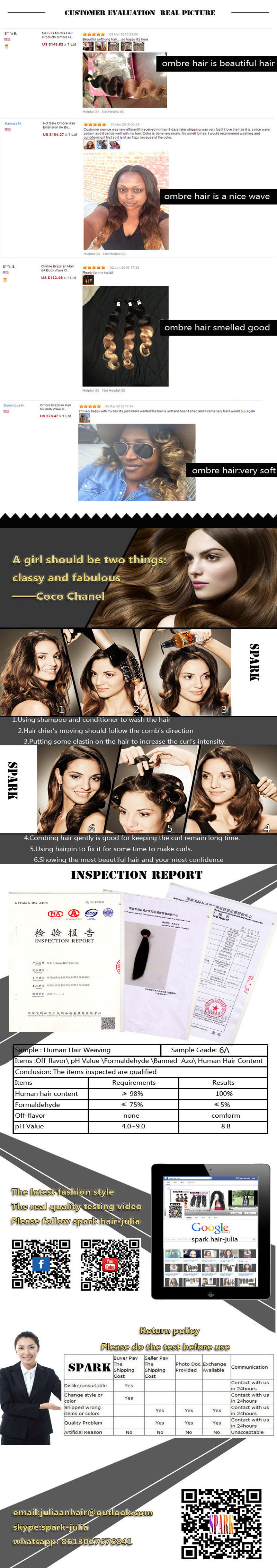 • Original Name: Spark hair products ombre brazilian virgin hair body wave with closure