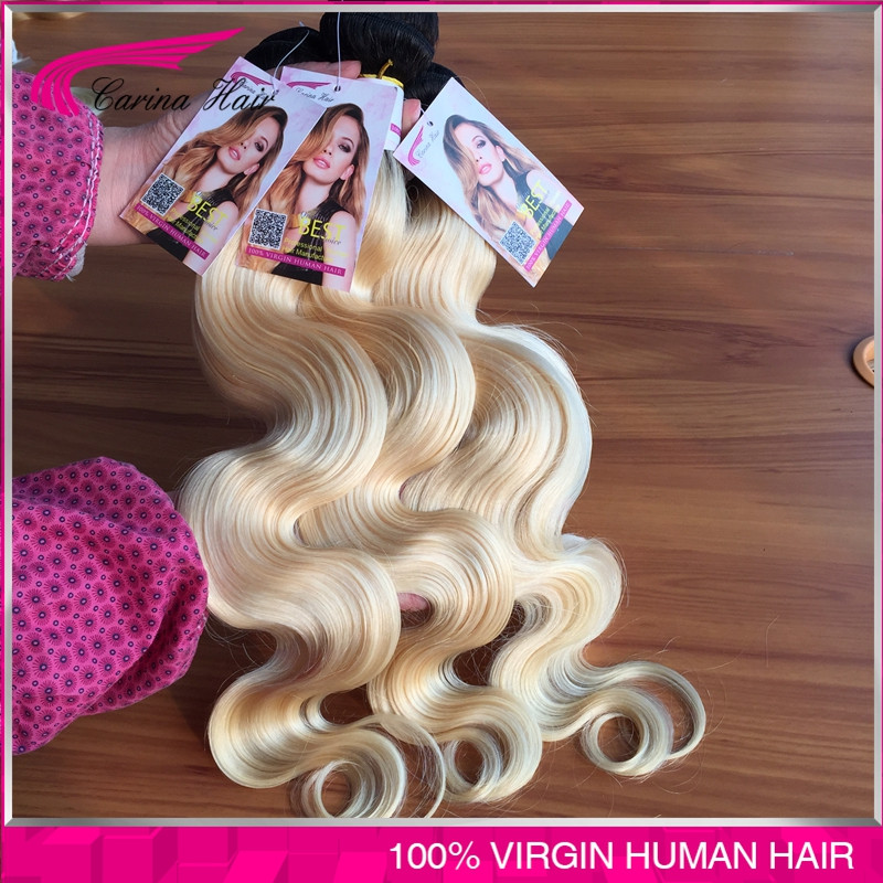 8A Grade Carina hair 613 blonde virgin hair dark roots ombre blonde brazilian hair 3pcs/lot ombre hair extension free shipping