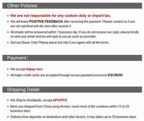 Item specifics