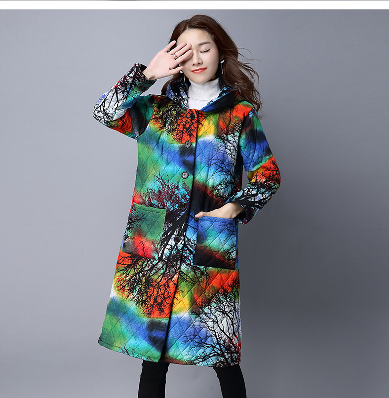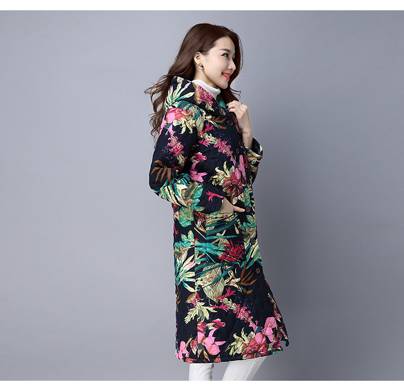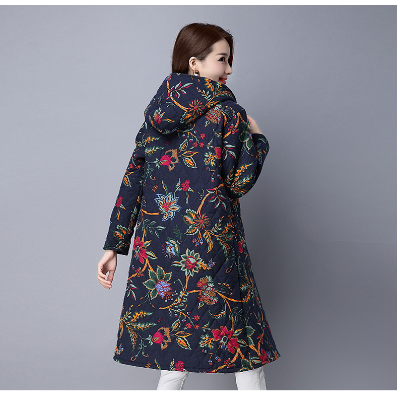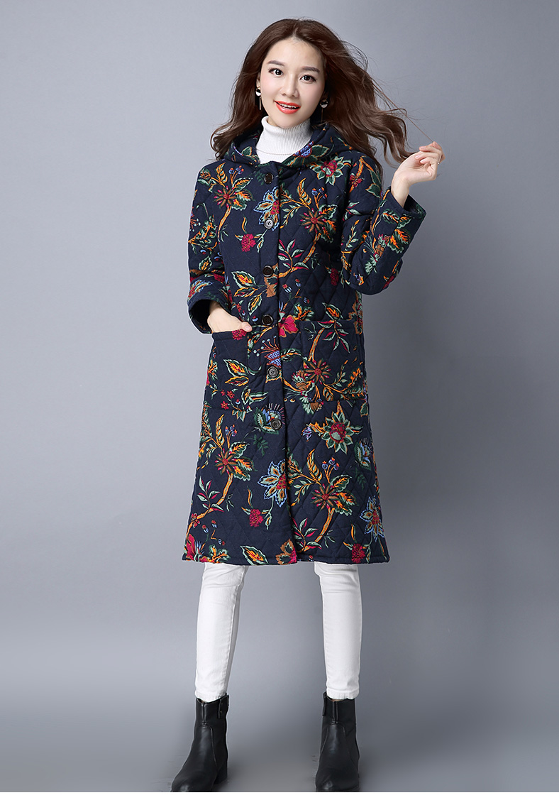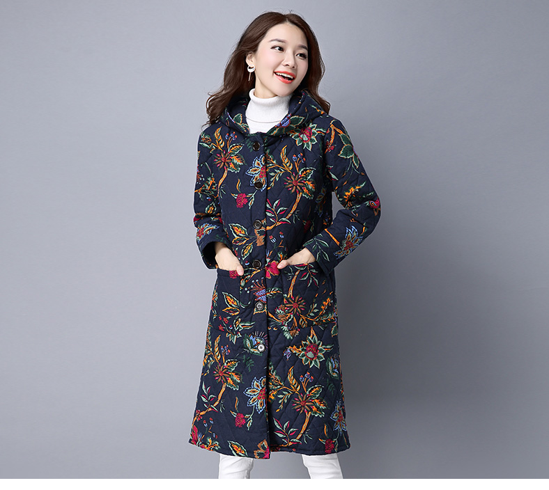 Autumn Winter New Chinese Style Woman's Hooded Coats Thicker Paragraph Long-sleeved Cotton Linen Womens Jacket Female Outwear
