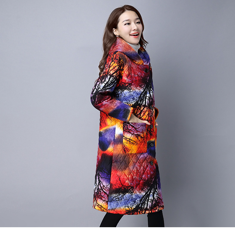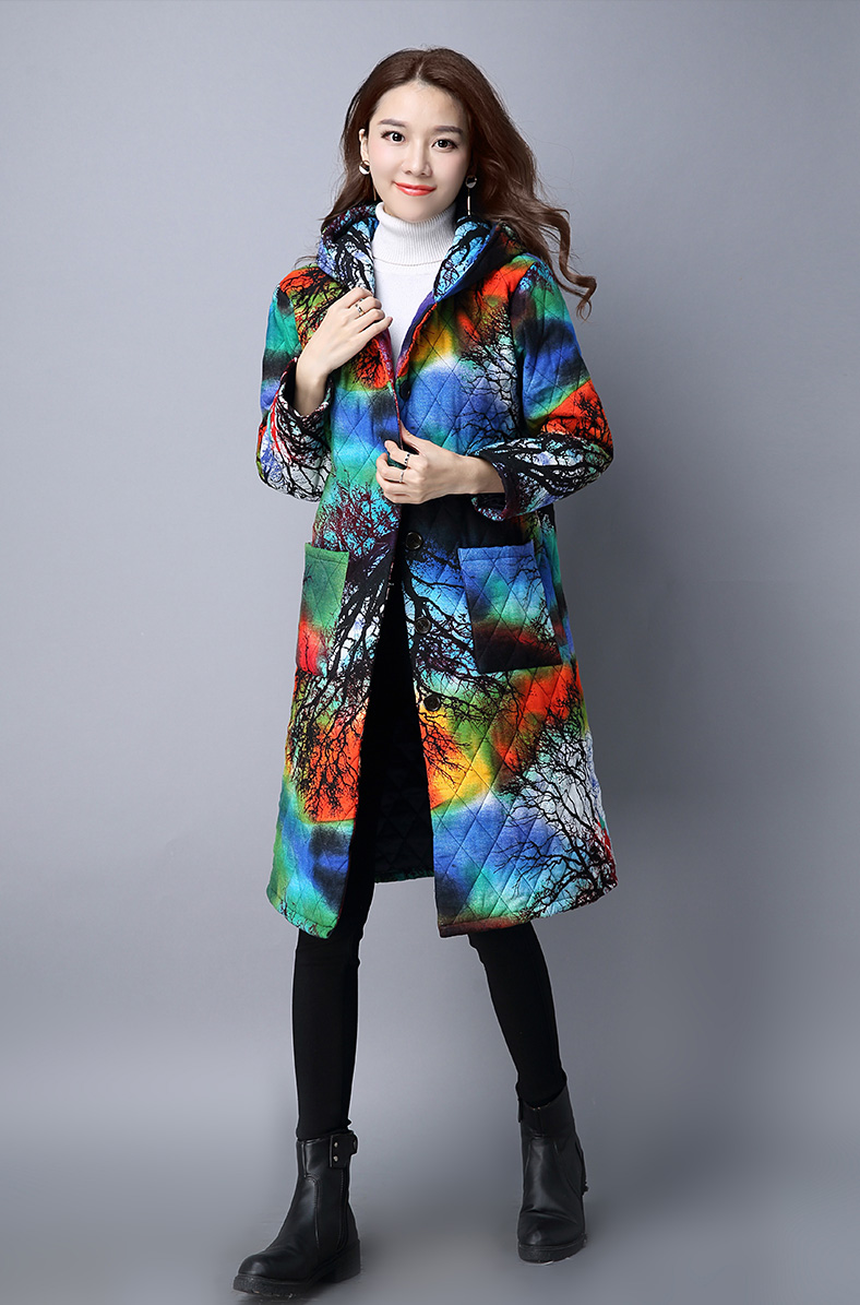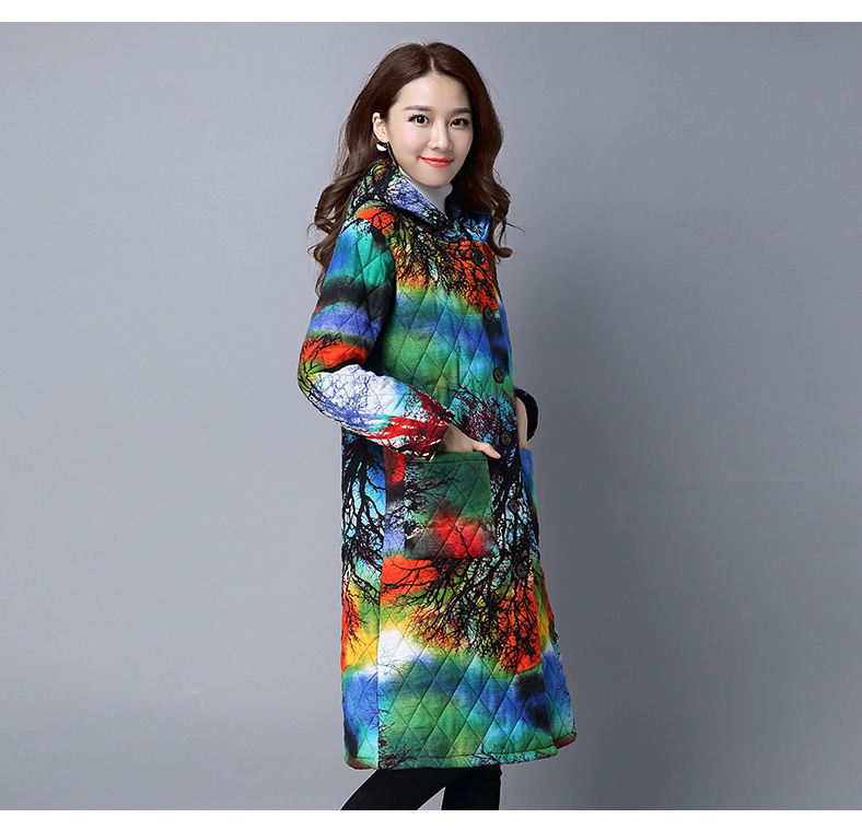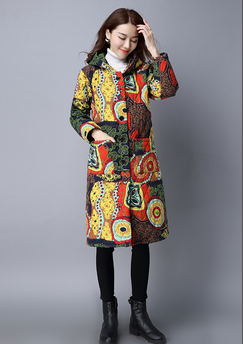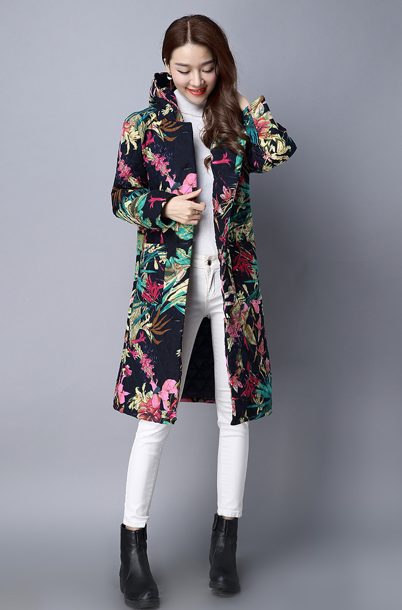 Autumn Winter New Chinese Style Woman's Hooded Coats Thicker Paragraph Long-sleeved Cotton Linen Womens Jacket Female Outwear