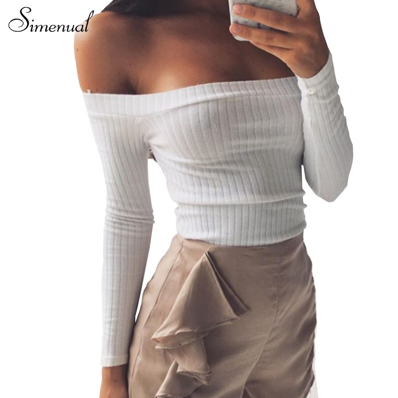 Autumn new 2017 off shoulder crop top t shirts hot sale long sleeve solid short t-shirts for women clothing fashion slim t-shirt