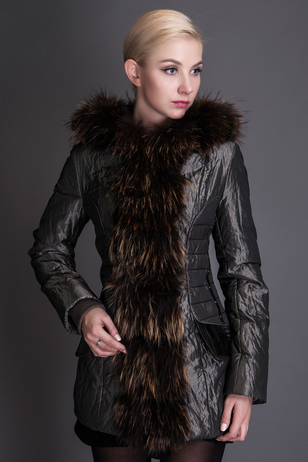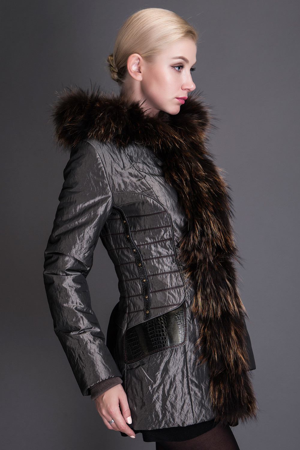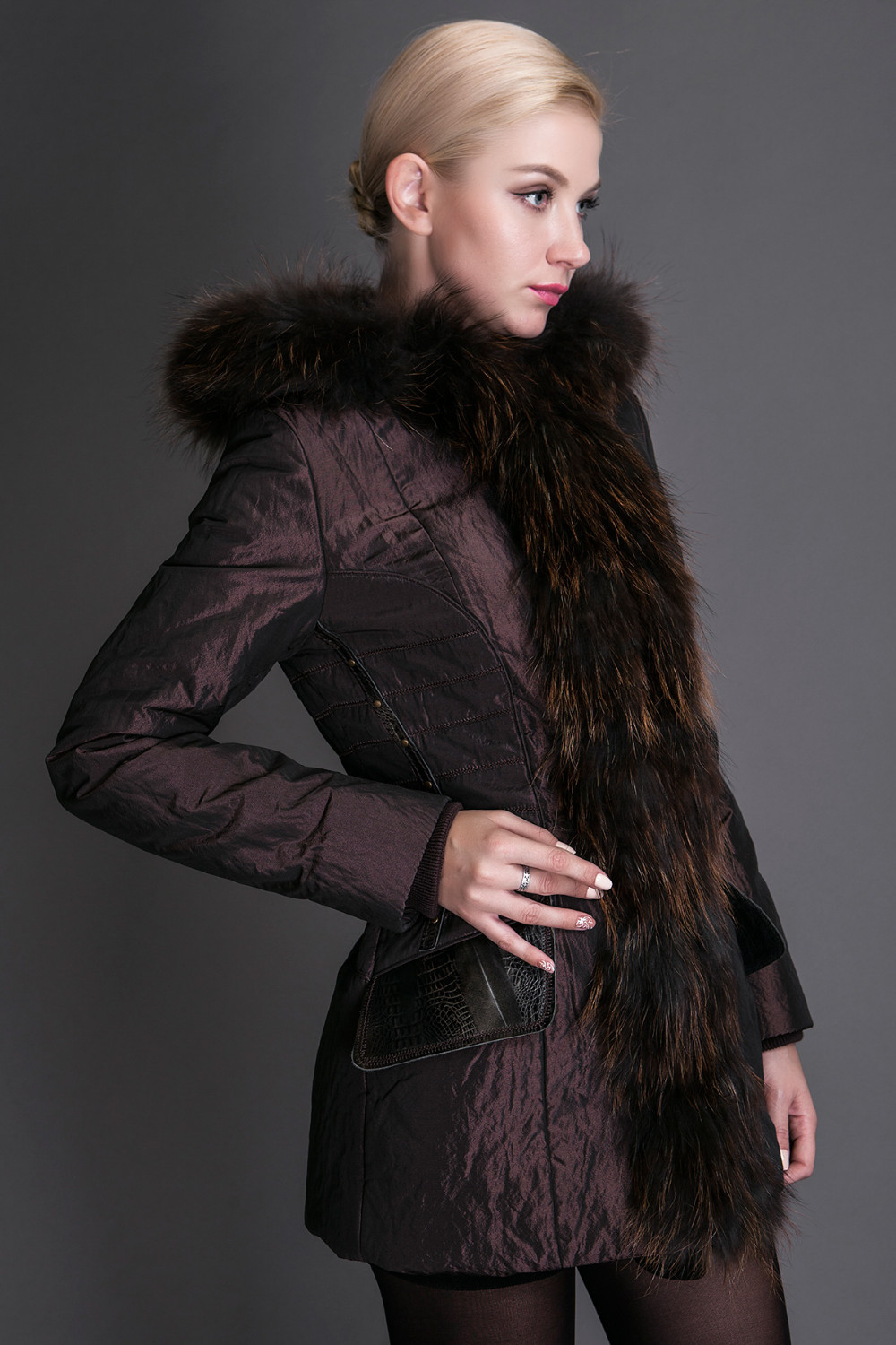 BASIC-EDITIONS-2016-Winter-Slim-Coat-Metallic-Silk-Fabric-With-Raccoon-Fur-Collar-Cotton-Jacket-Spli-32225166736