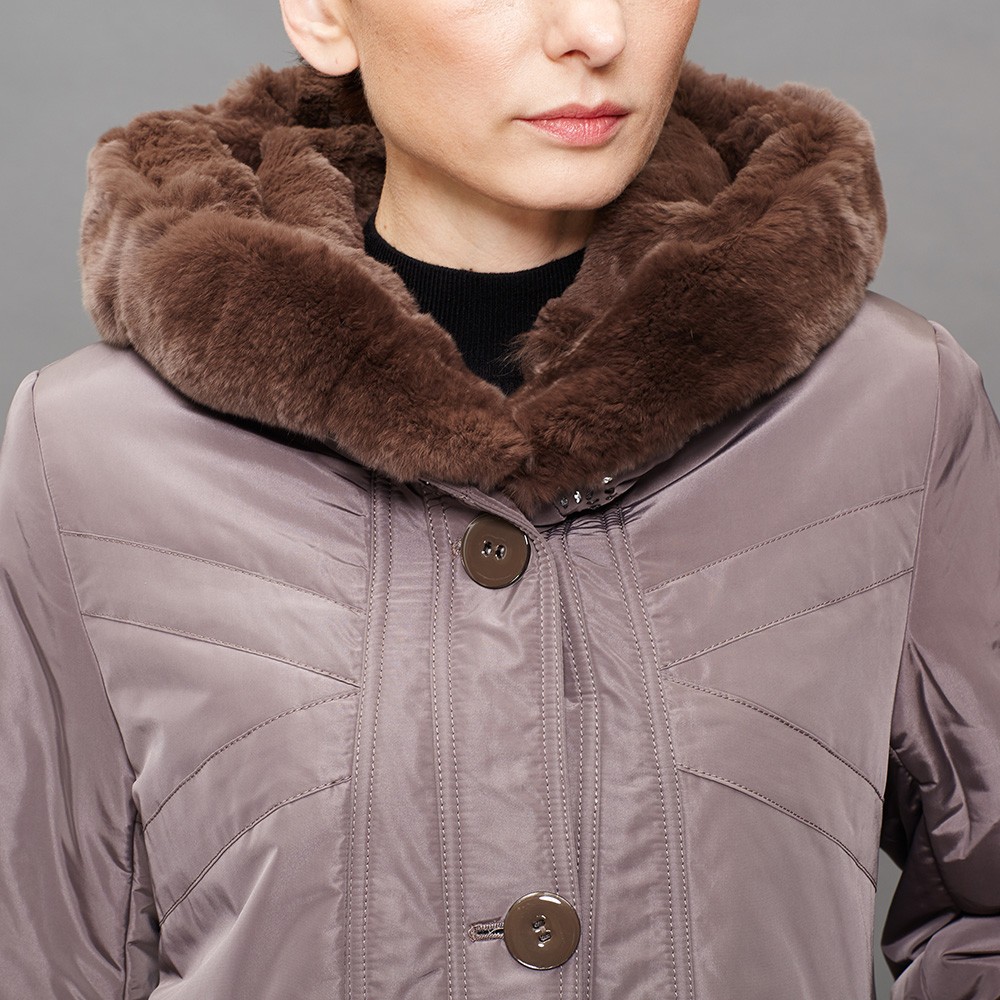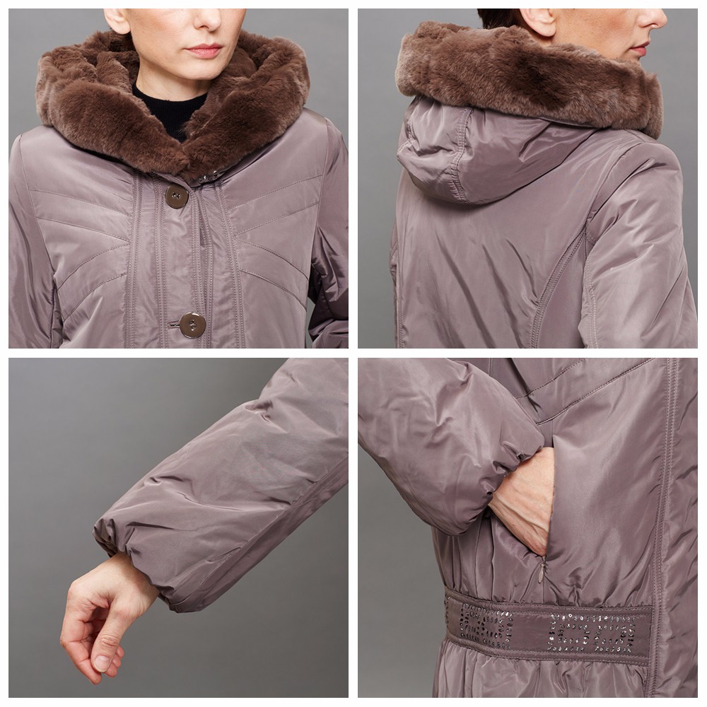 BASIC EDITIONS Women Winter Jackets Thinsulate Cotton Long Sleeve Rex Rabbit Collar Parka Women Hat Medium-Long Jacket - B978
