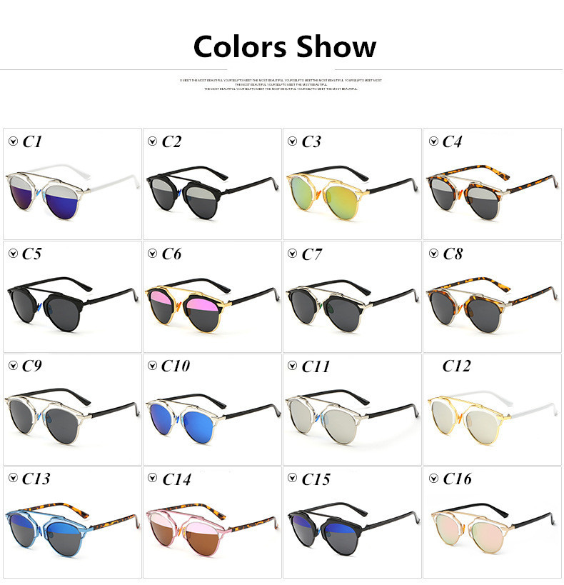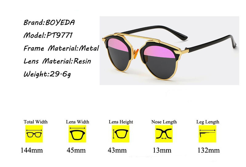 BOYEDA Fashion Flat Top Rihanna Luxury Sunglasses Women Brand Designer Polarized Retro Cat Eye Metal Frame Mirror Sun Glasses