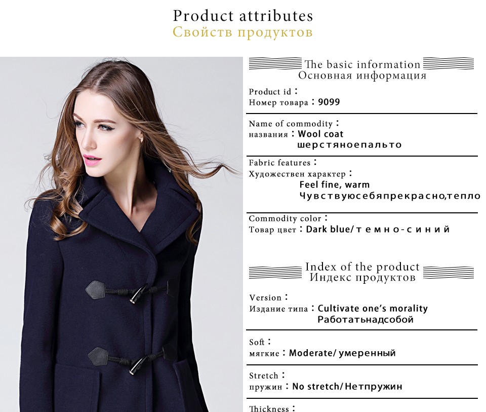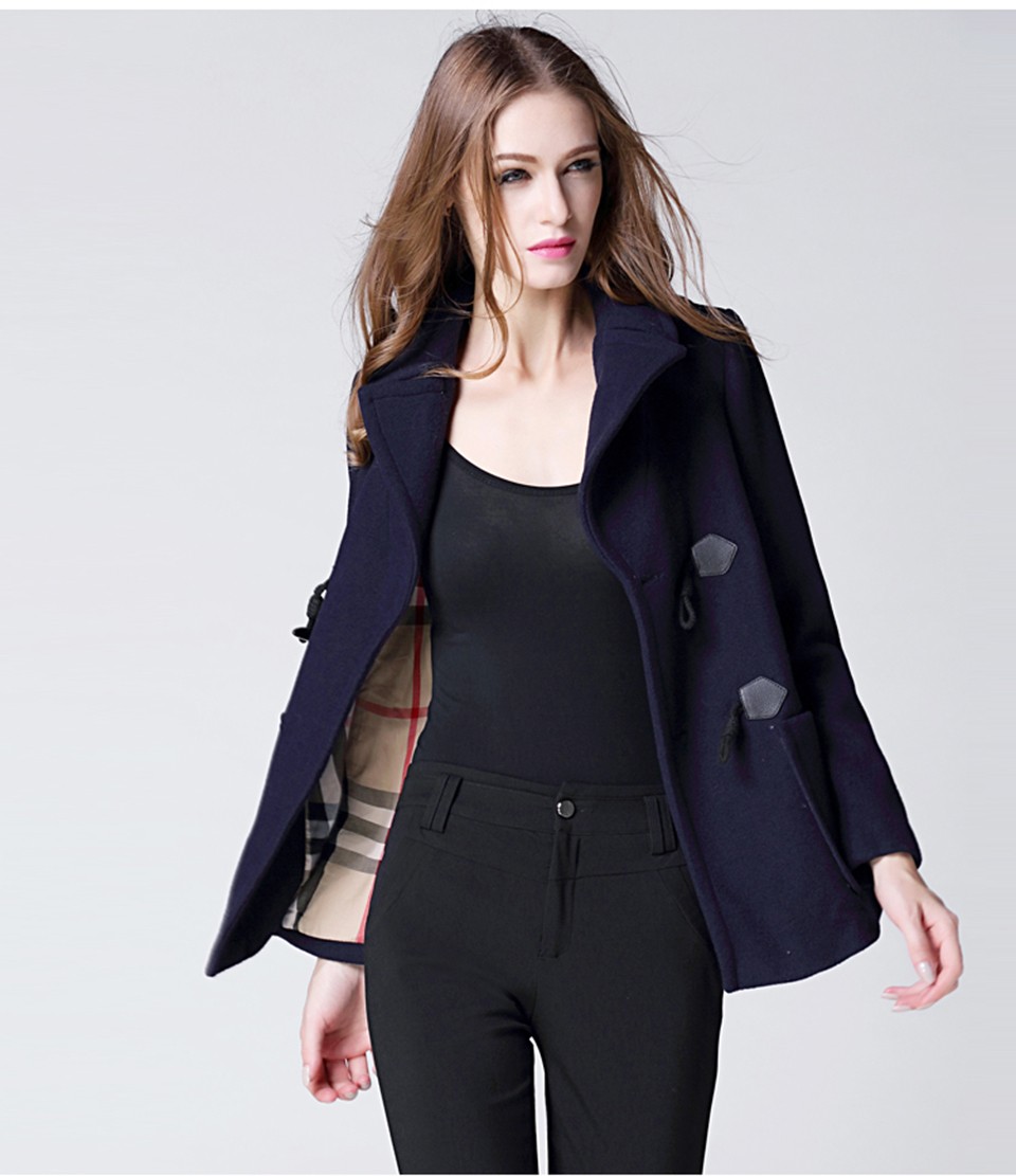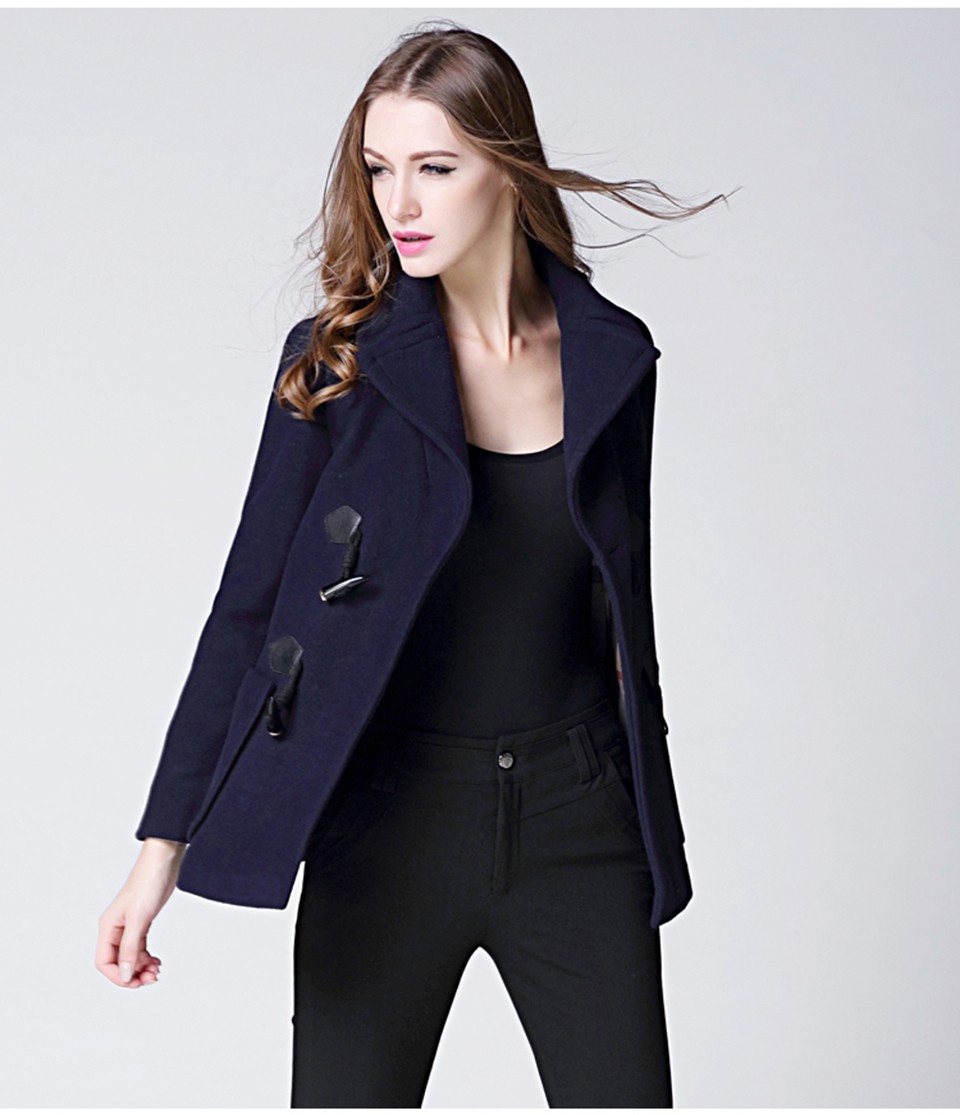 BURDULLY 2016 Autumn Fashion Cotton Long-sleeved Pure Cashmere Coat Woolen Female Women's Winter Jacke Plus Size Horn Button
