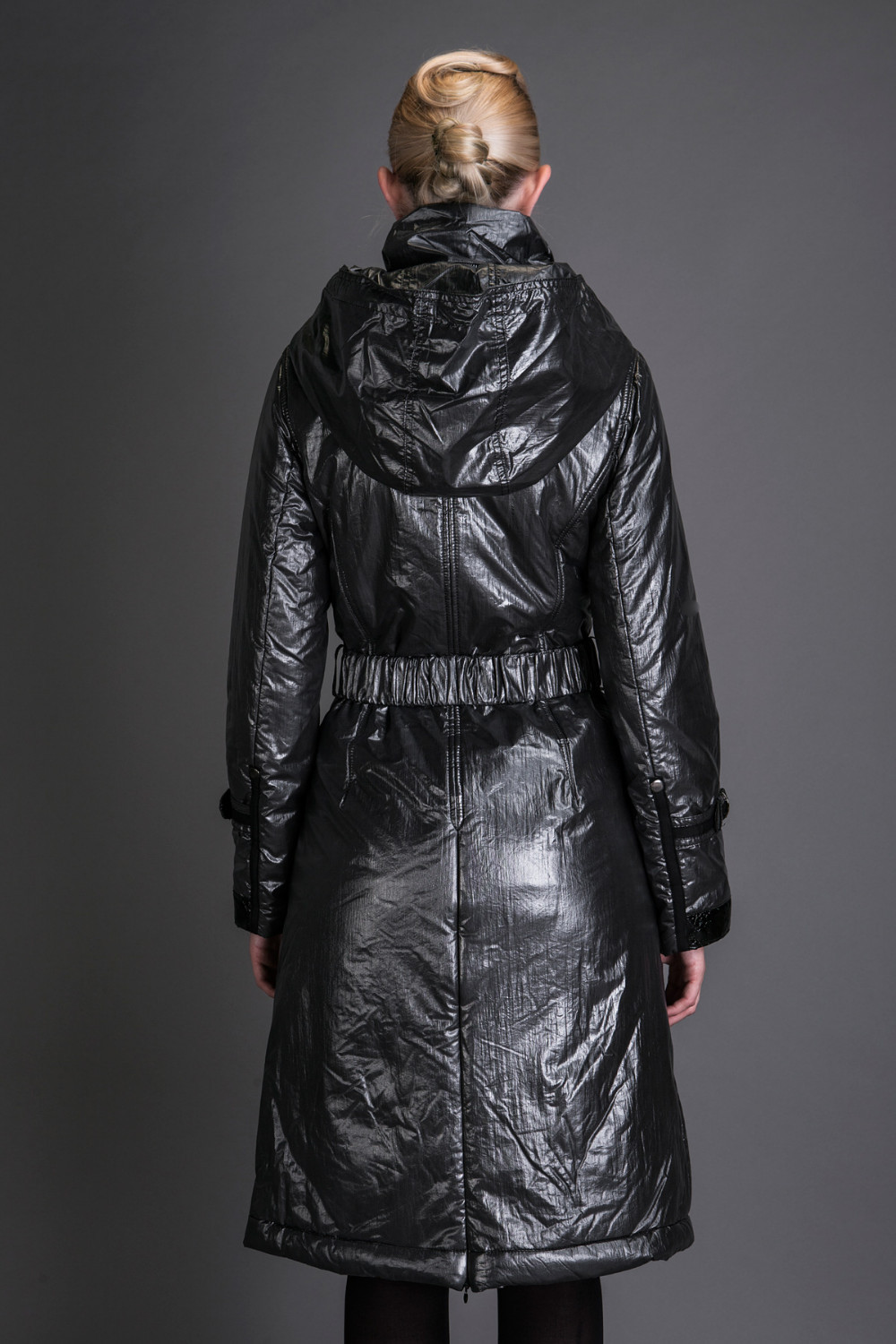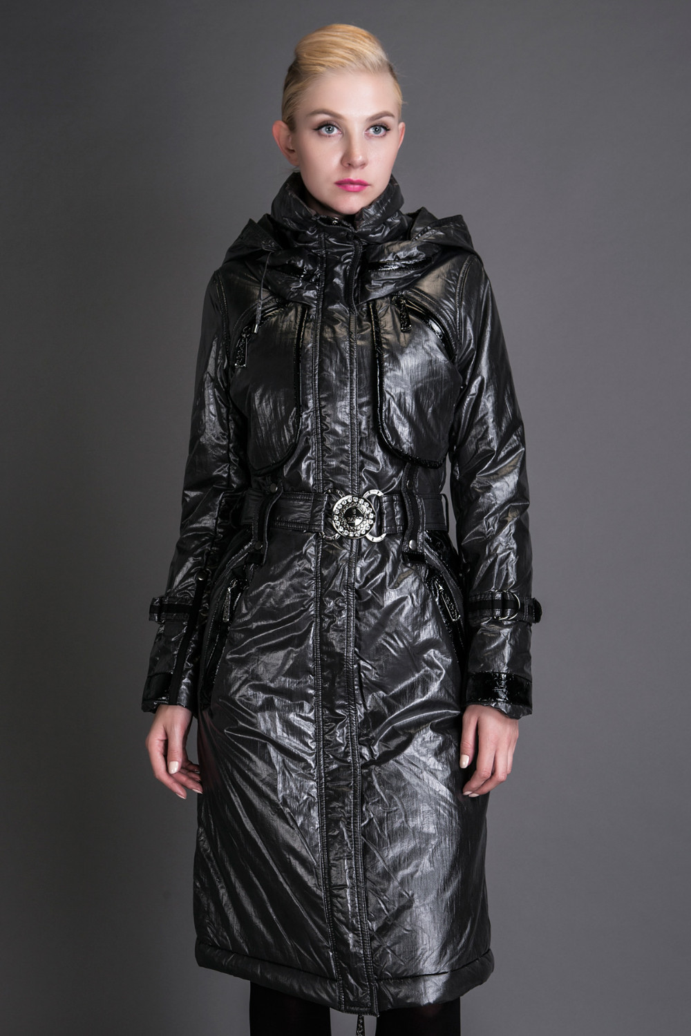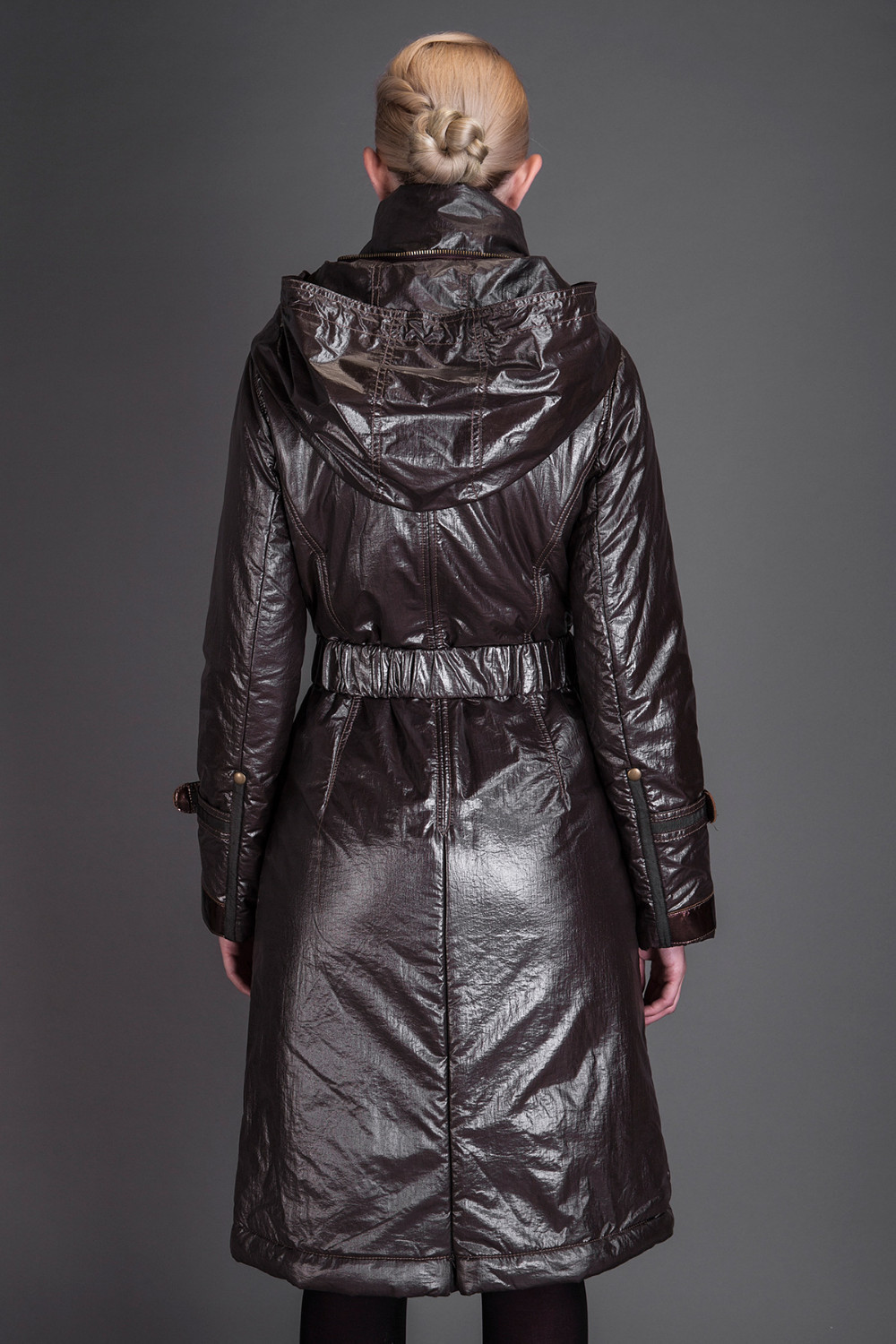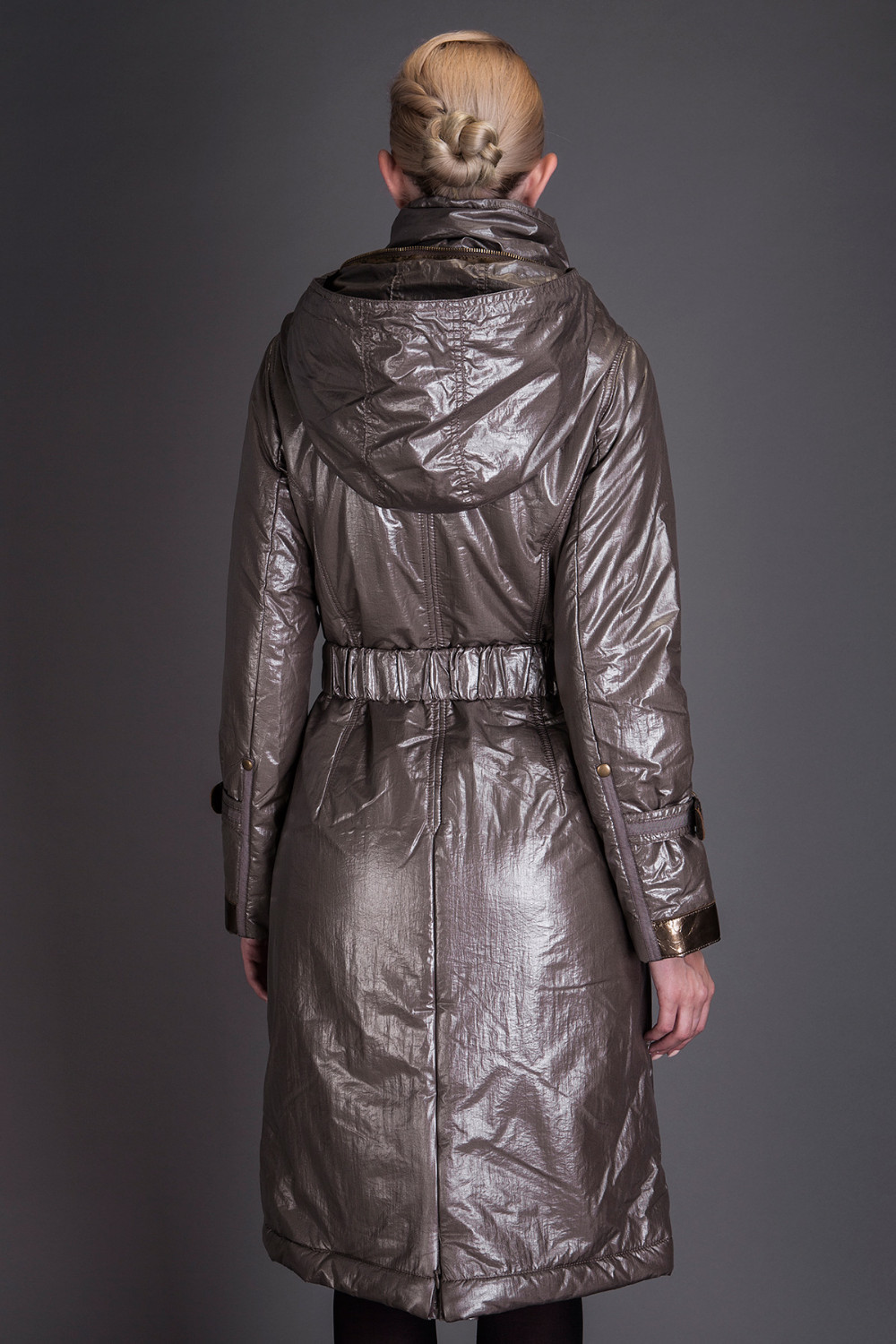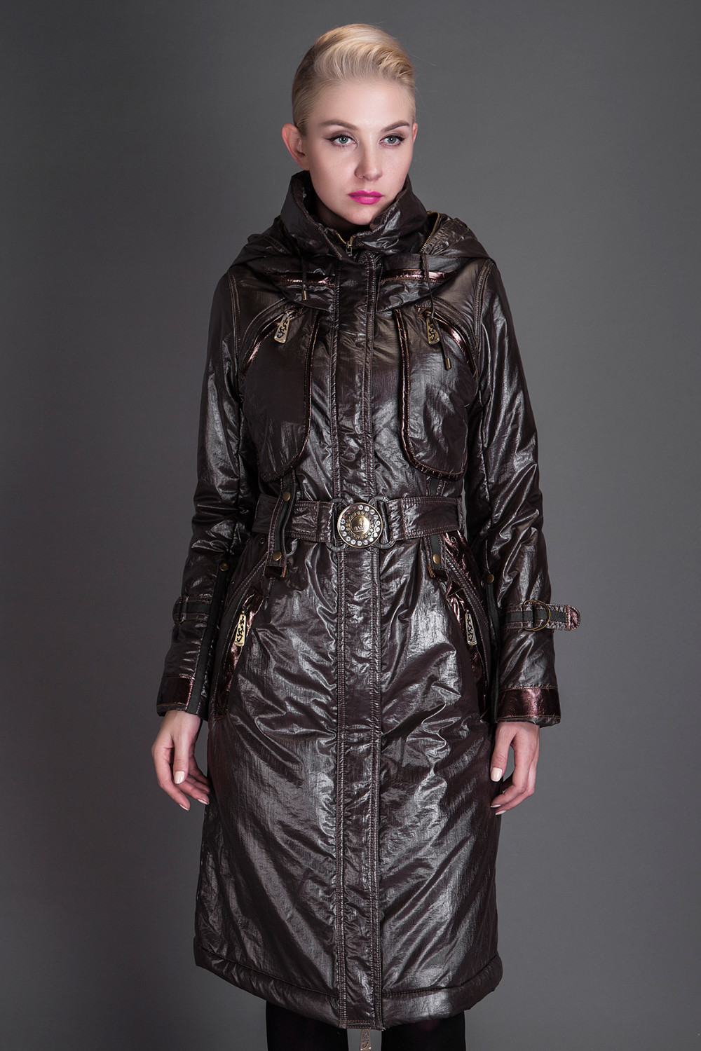 Basic Editions Autumn Coats and Jackets Metallic Silk Fabric Stylish Long Cotton Coat with Belt and Hooded - JQM08233