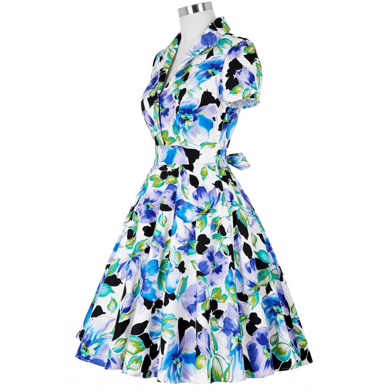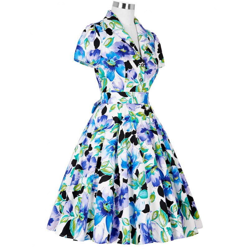 Belle Poque 2017 Summer Women Tea Dress Party Short Sleeve Knee Length 50S 60S Floral Vintage Dresses Rockabilly Gown Plus size