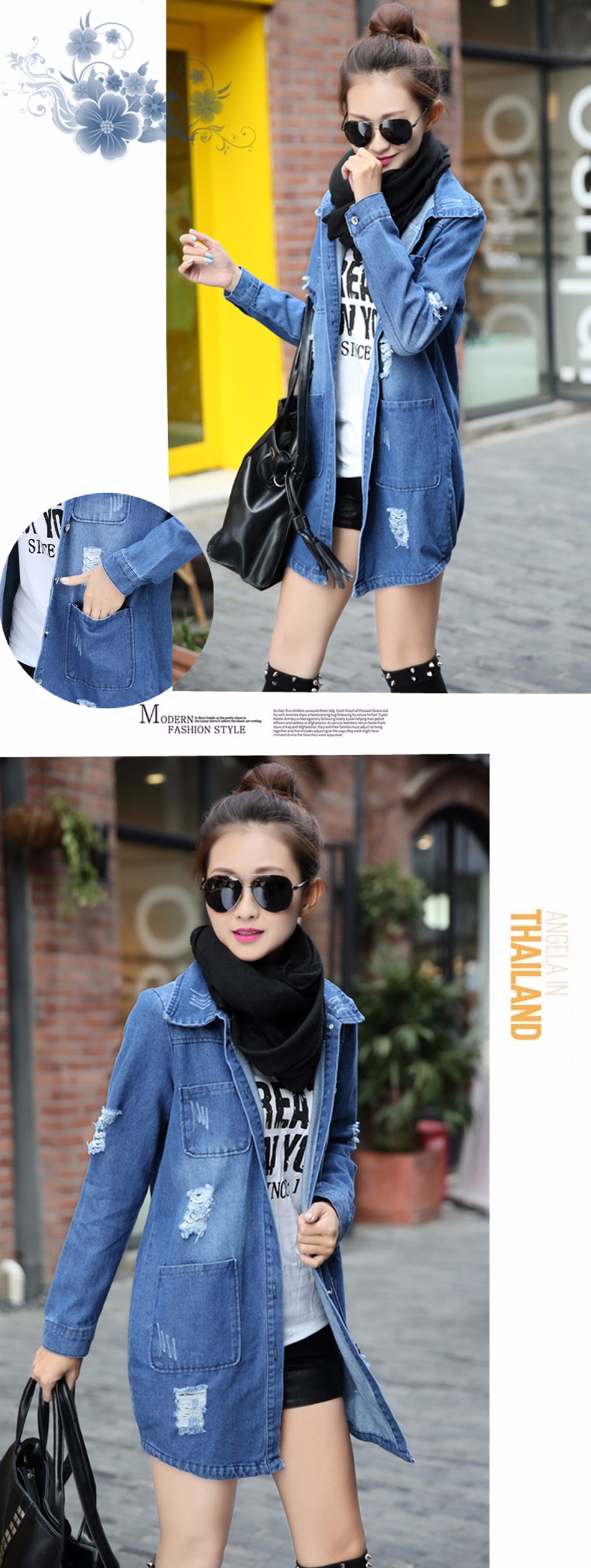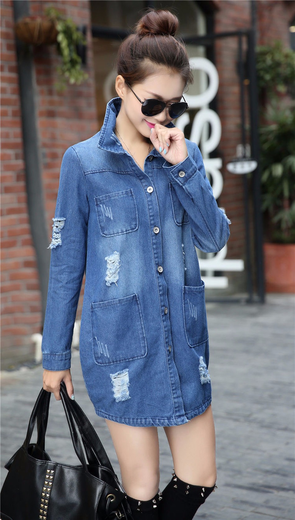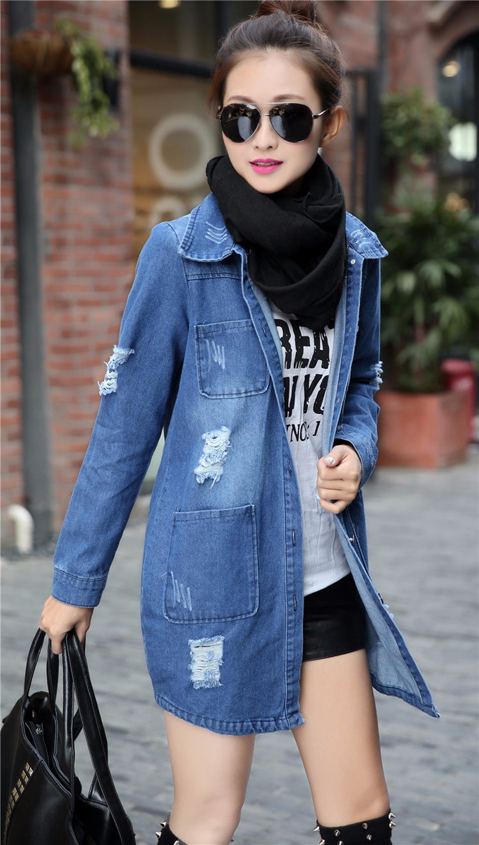 New Arrival 2016 Plus Size Women Denim Jacket Cotton Jeans Coat Casacos Femininos Ladies Long Denim Coats XC12
