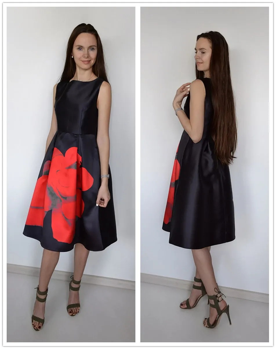 CHICING Women Summer 2017 Large Rose Floral Print Midi Dresses High Waist Ball Gown Elegant Vintage Tank Dress Vestidos B1505041