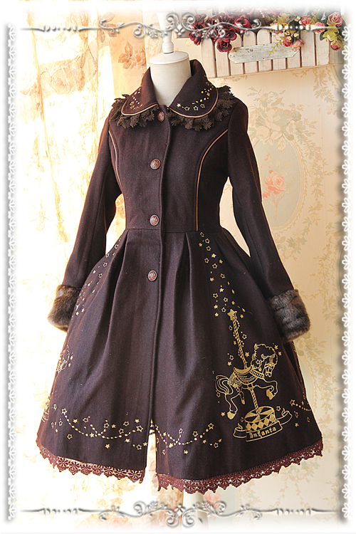 Features: Lace up back, exquisite gold horse embroidery adds elegance to the coat. Very warm to wear in winter.