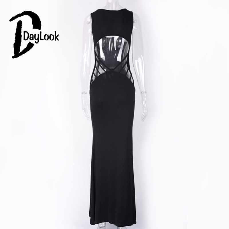 Daylook 2016 Summer Style Sexy Women Dress Black Backless Strappy Sleeveless Maxi Dress Fashion Long Bodycon Hollow Out Vestidos