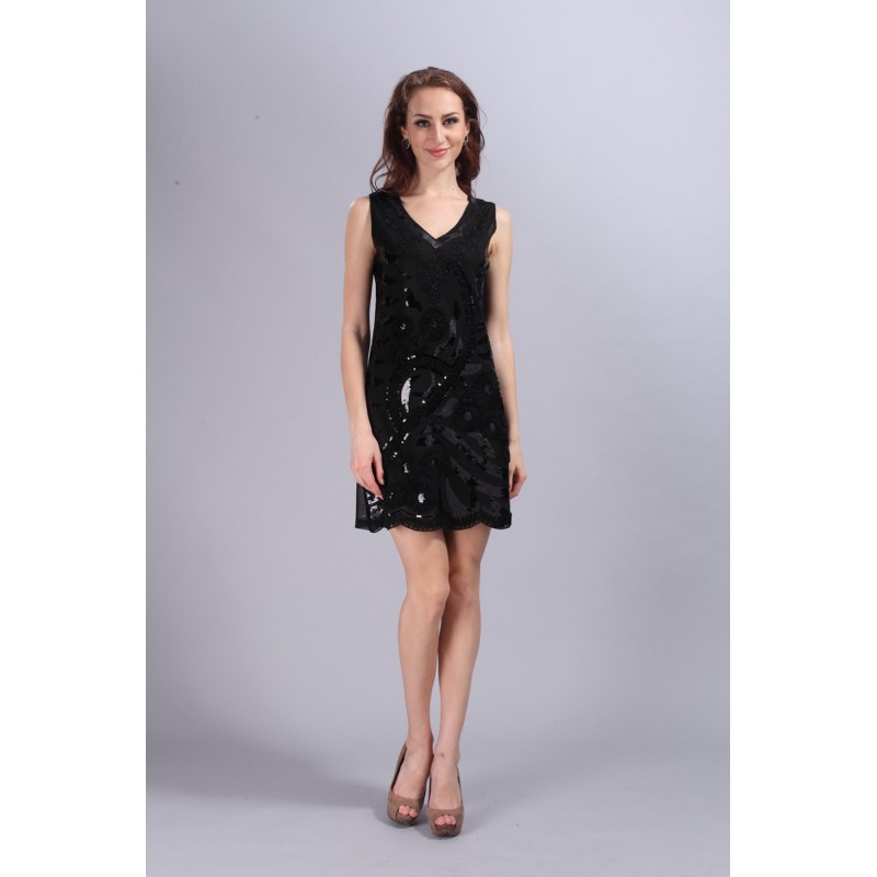 Elegant 1920s Flapper Great Gatsby Charleston Dress Women V-Neck Sleeveless Embroidery Party Dress Sequins Beading Appliques 648