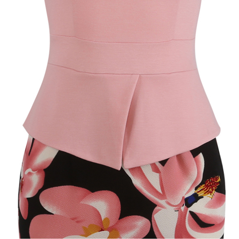 Fantaist Women Keyhole Knee Length Vintage Flower Print Elegant Wedding Party Business Bodycon Pencil Peplum Sheath Work Dress