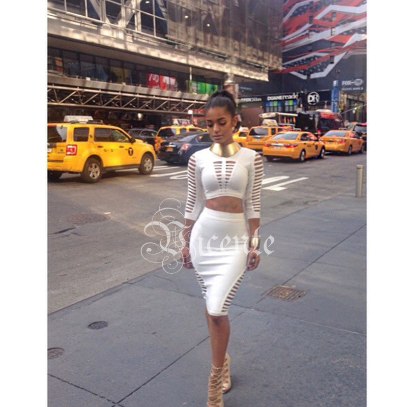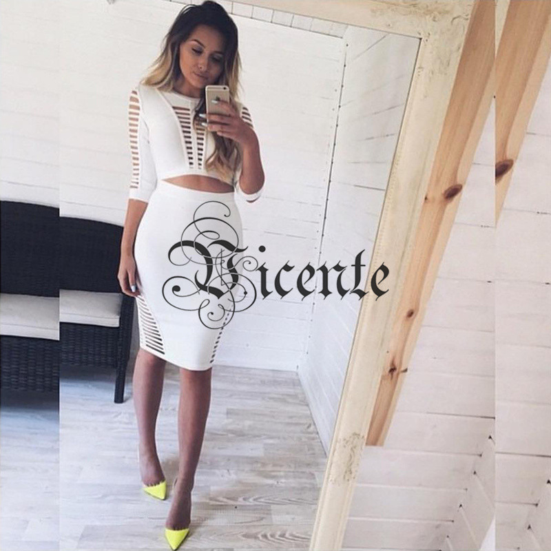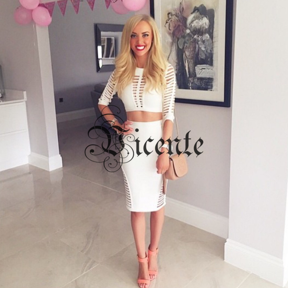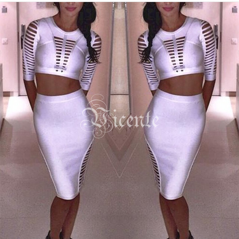 Free Shipping! New Goregous Hollow Out Fashion Two Pieces Bandage Set Celebrity Party Bandage Dress