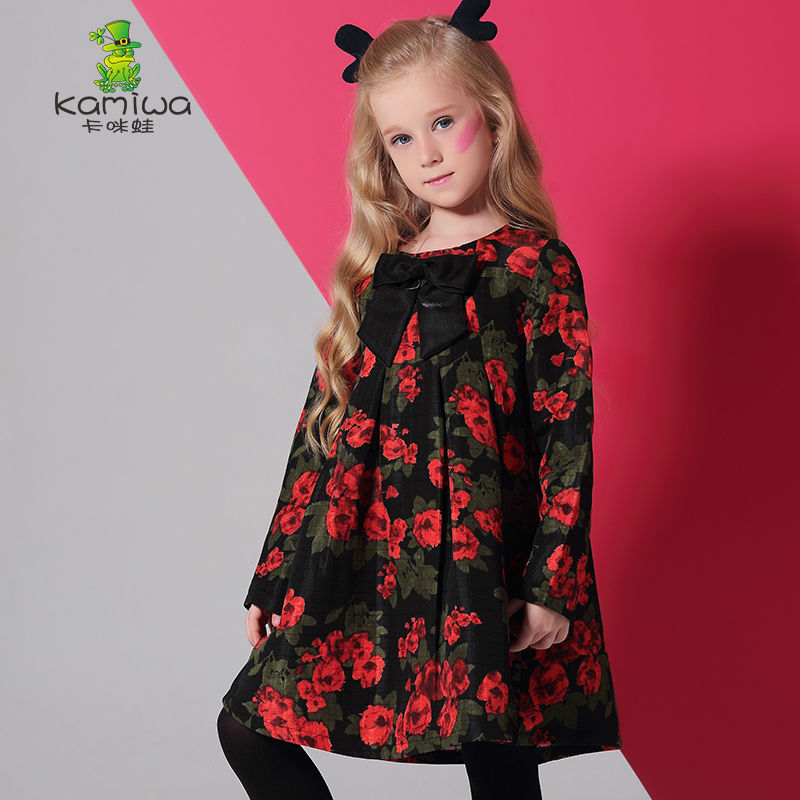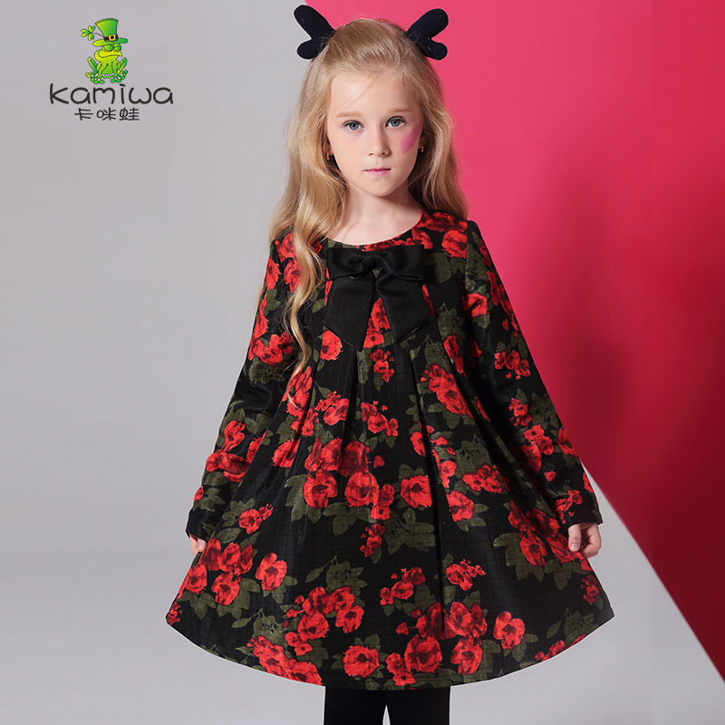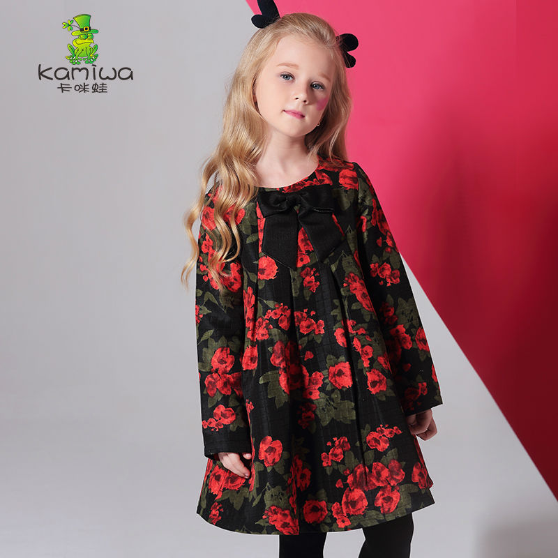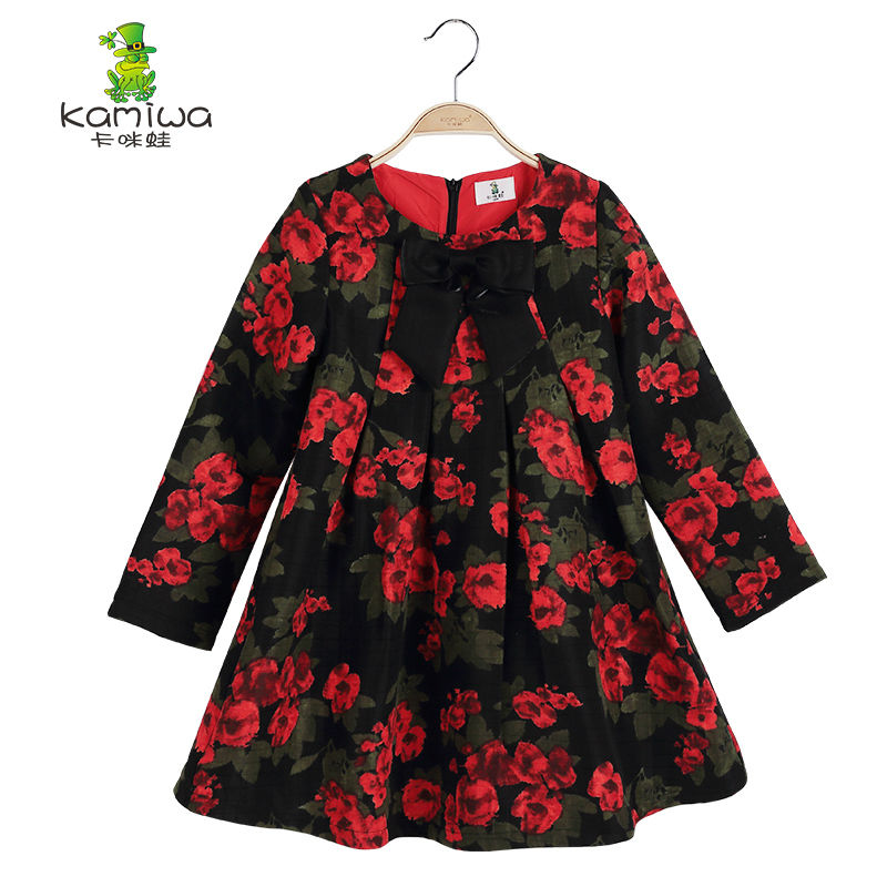 KAMIWA 2017 Floral Printing Baby Girls Dresses Kids A-line Autumn Full Toddler Cotton Teenage Children Clothing