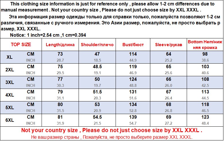 • Size : XL 2XL 3XL 4XL 5XL 6XL