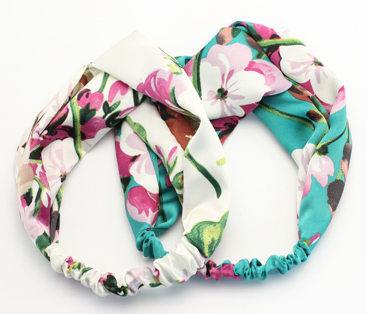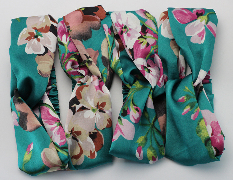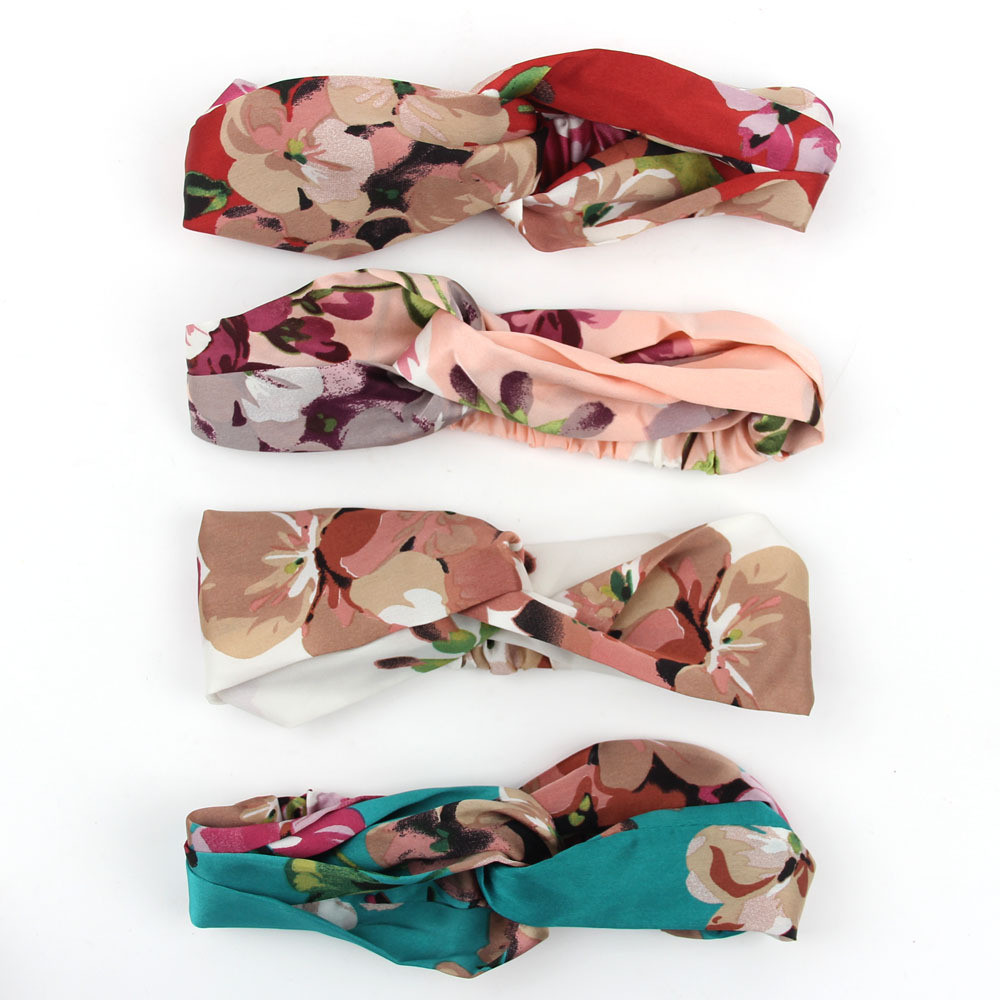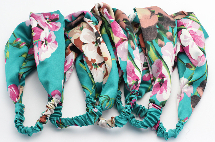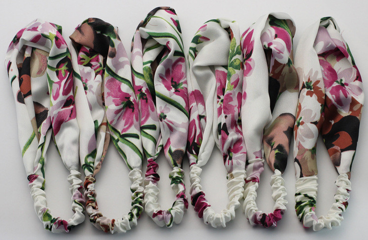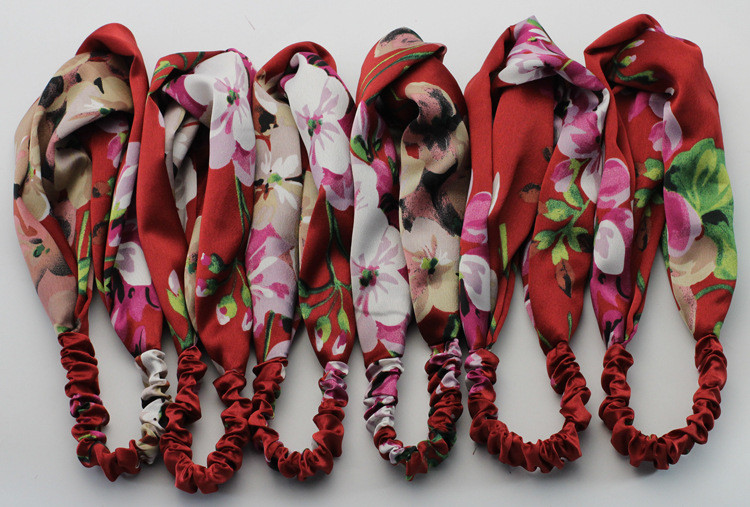 Hair Accesorries Headbands for Women Baby Head band Girl Hairbands Floral Print Silk Satin fabric Hair Band Elastic Cross Turban