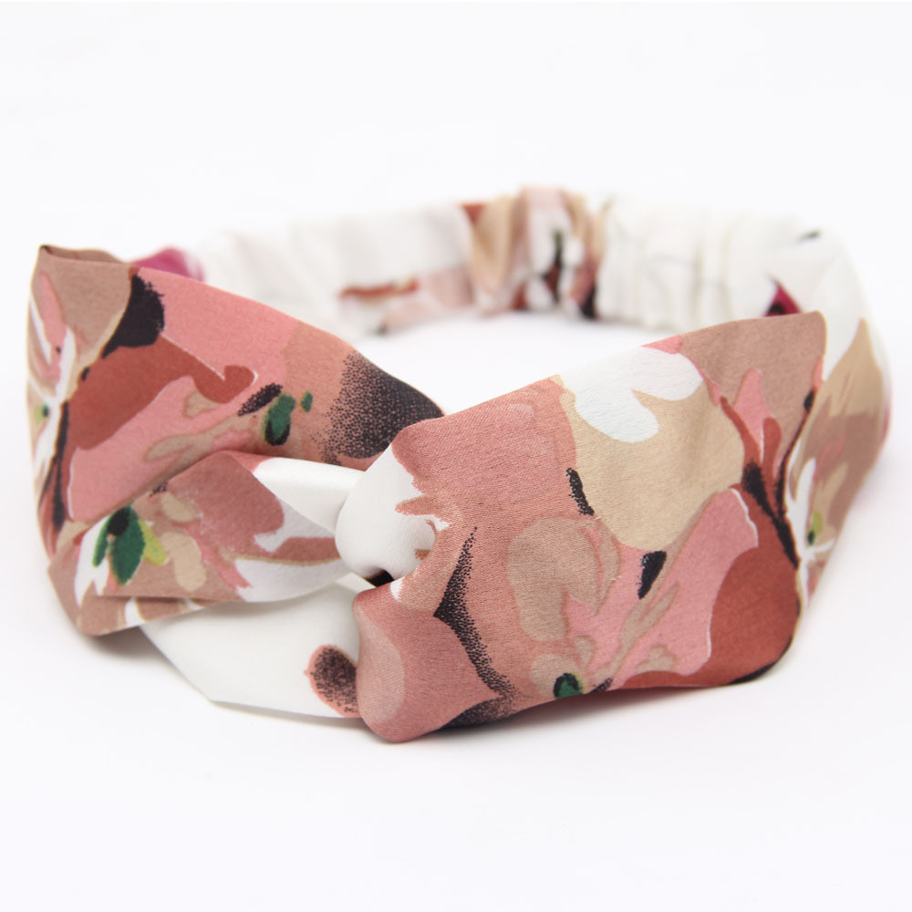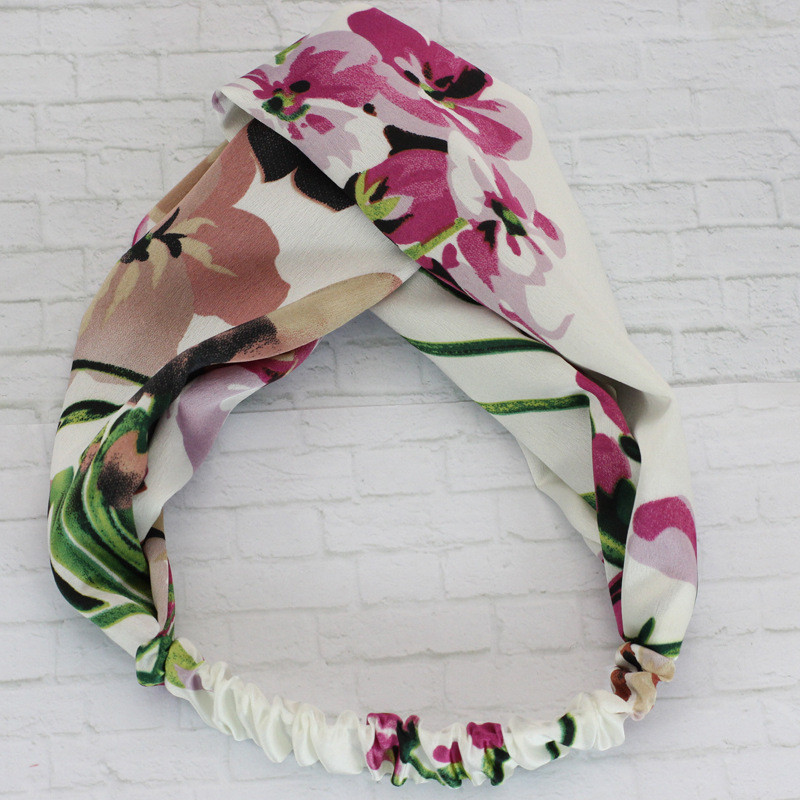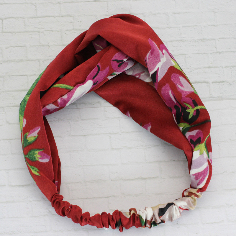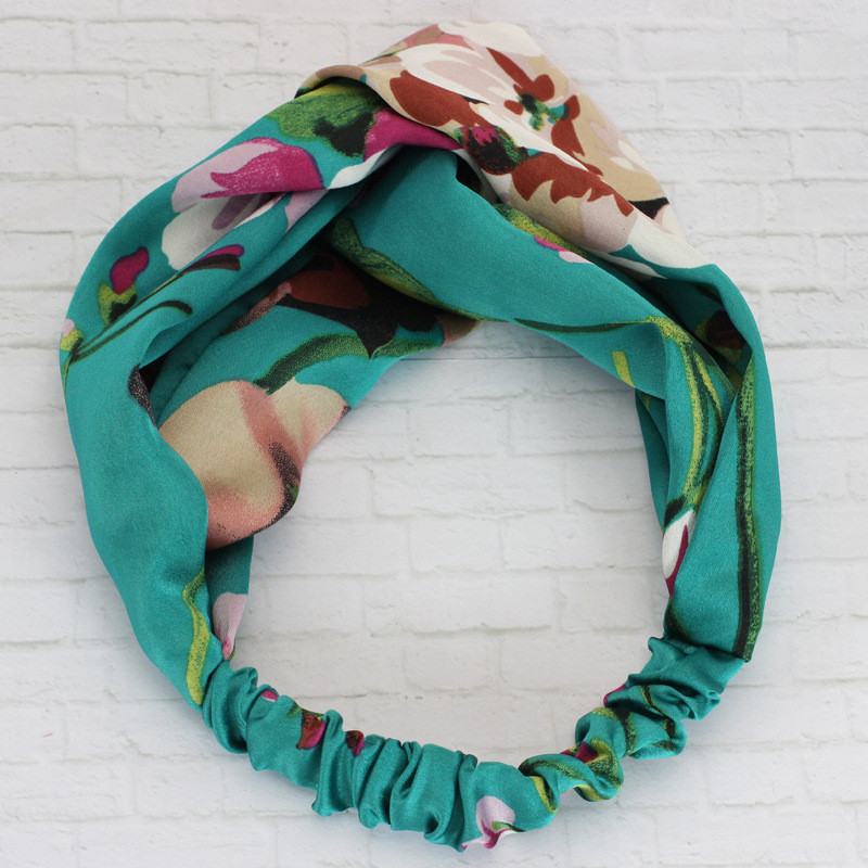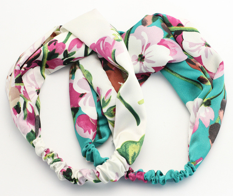 Hair Accesorries Headbands for Women Baby Head band Girl Hairbands Floral Print Silk Satin fabric Hair Band Elastic Cross Turban
