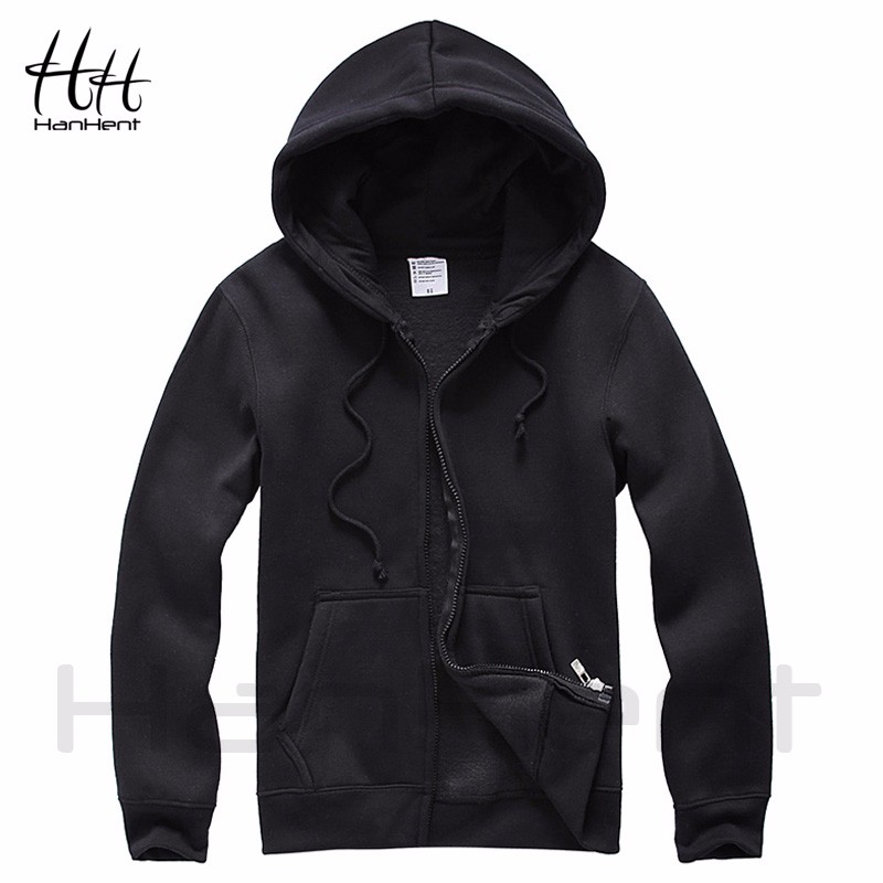 HanHent Fashion Solid Color Fleece Sweatshirts Man Thick Autumn Winter Cardigan Streetwear Fitness Jacket Men\'s Casual Hoodies
