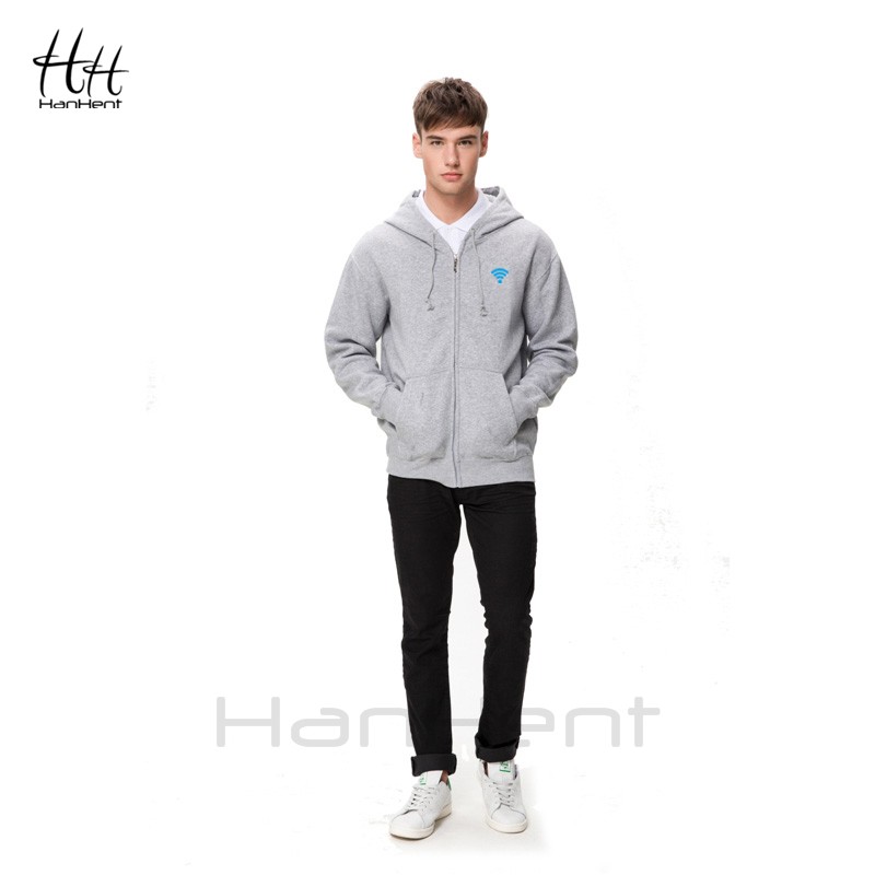 HanHent Winter Warm Jacket Casual Zipper Fleece Slim Fit Hoodies Men Thicken Sweatshirts Funny Wifi Print Hooded Streetwear