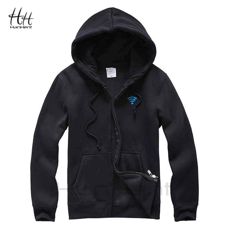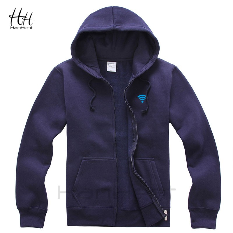 HanHent Winter Warm Jacket Casual Zipper Fleece Hoodies For Men Thicken Sweatshirts Funny Wifi Print Hooded Streetwear