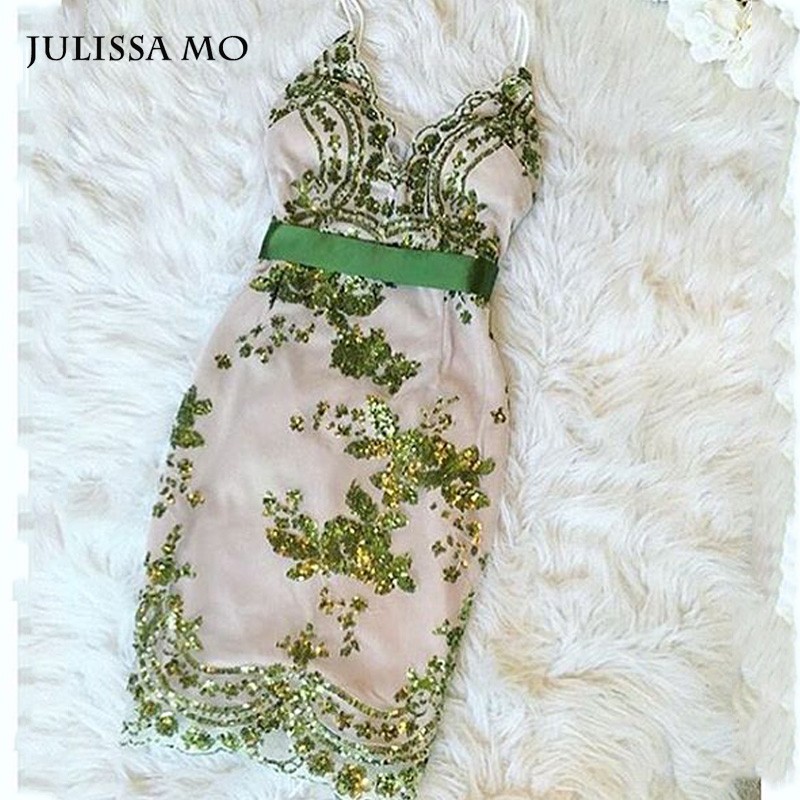 Julissa Mo 2018 Vestidos Women Summer Dresses Elegant Sexy V Neck Vintage Gold Sequined  Evening Bandage Bodycon Party Dress