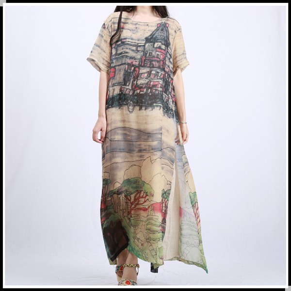 2016-Summer-Sundress-For-Women-Maxi-Dress-Fake-2-Piece-Vintage-Dress-Short-Sleeve-Landscape-Print-Ro-32663082312