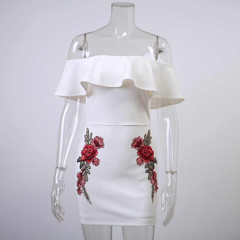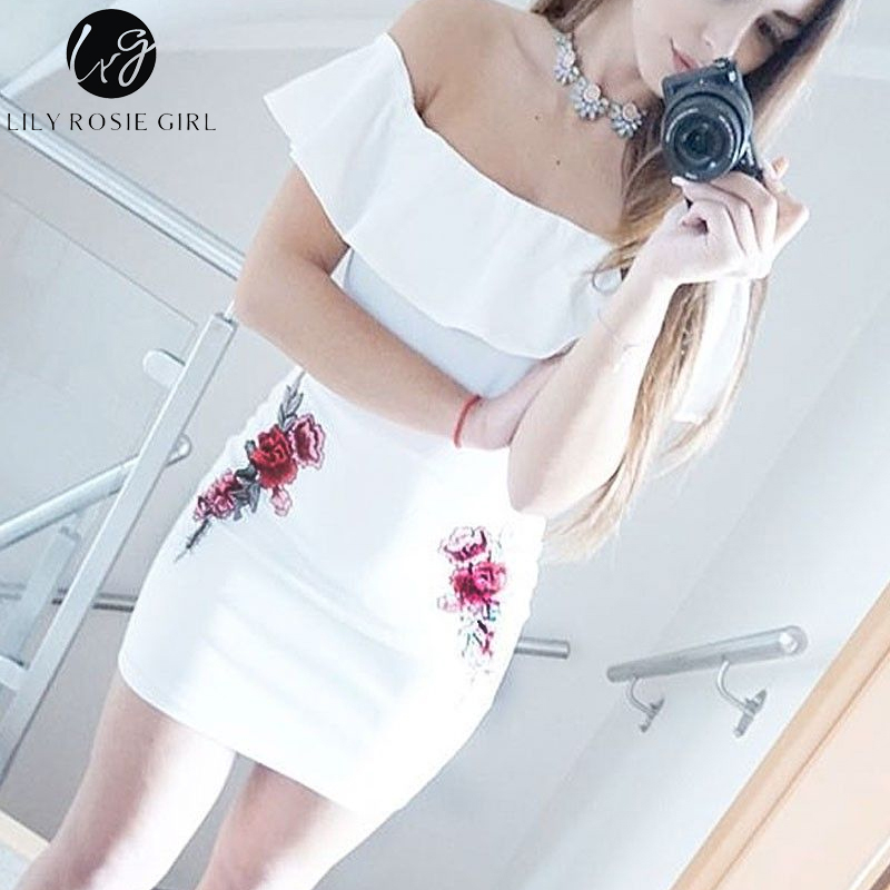 Lily Rosie Girl Off Shoulder Black Sexy Embroidery Women Mini Dress Slash Neck Bodycon Autumn Winter Ruffles Short Dress Vestido
