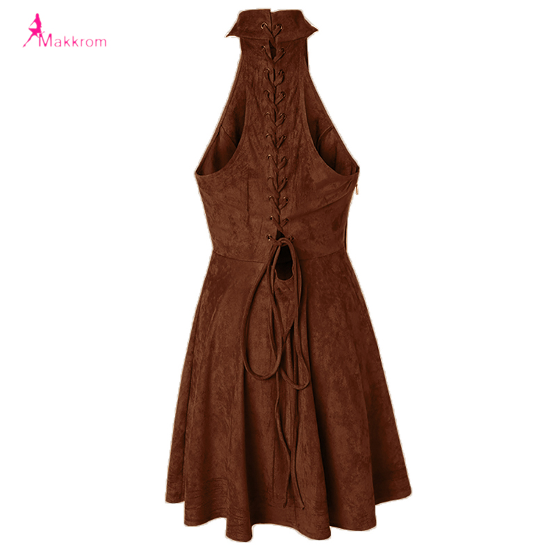 Makkrom 2017 Summer Woman Party Bandage Lace up Dress Off Shoulder Sexy Backless Casual Solid Pleated Mini Dress Plus Size