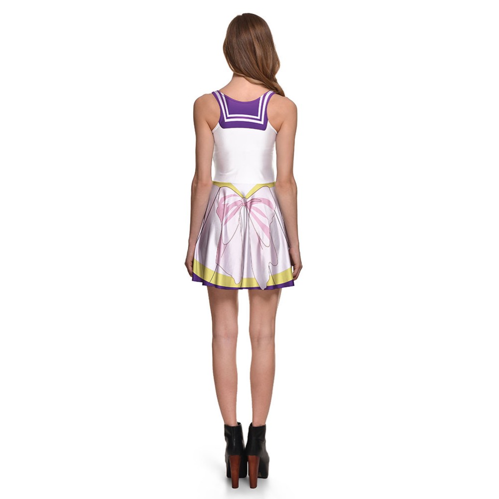 NEW 1070 Sexy Girl Women Summer Sailor Moon Crystal white Cosplay 3D Prints Reversible Sleeveless Skater Pleated Dress Plus size
