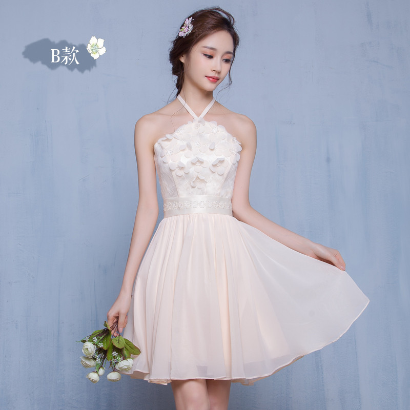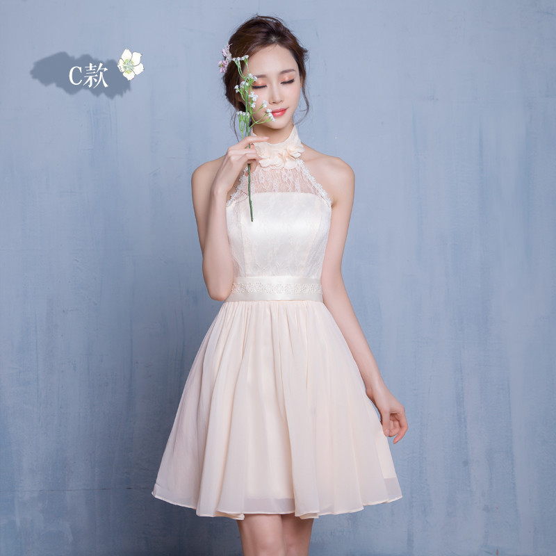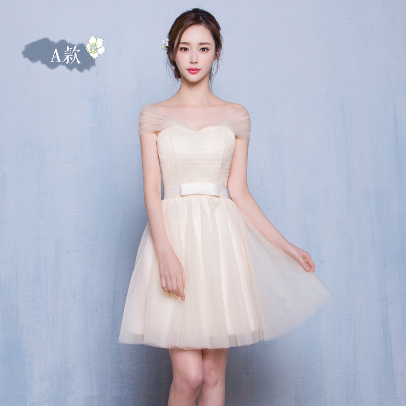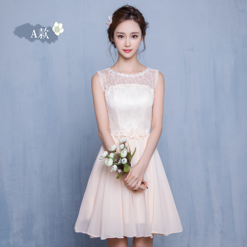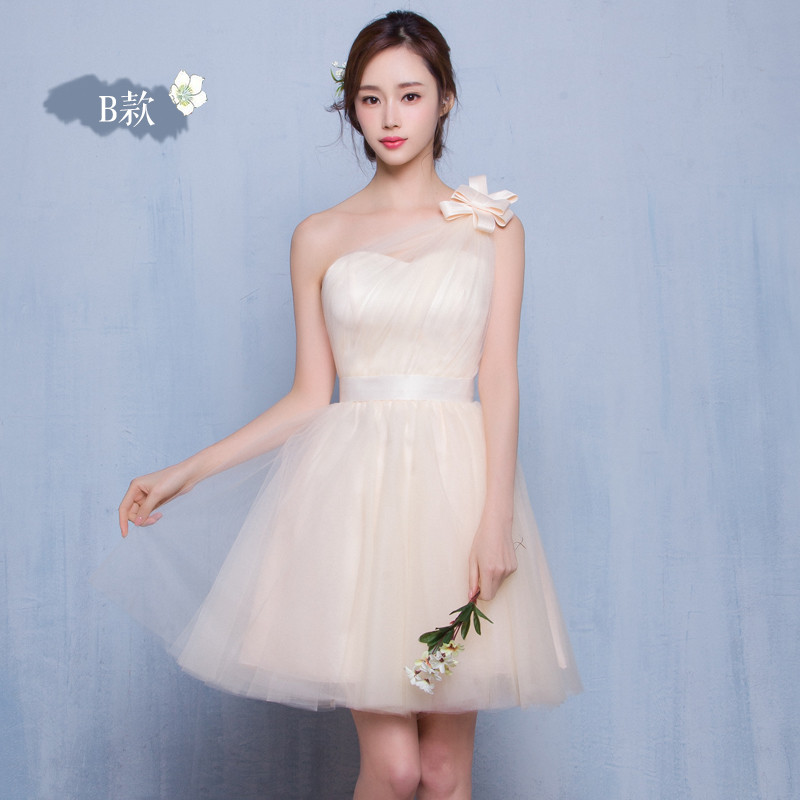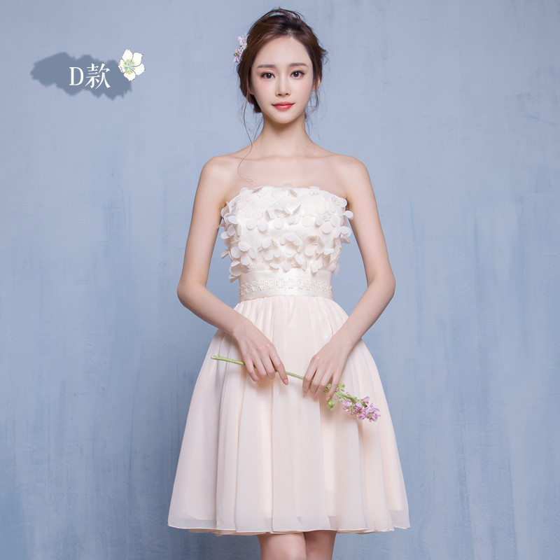 New Arrival Cute Champagne Party Dresses Short Chiffon Appliques Mismatched Dresses Vestidos De Festa Bridesmaid Wedding