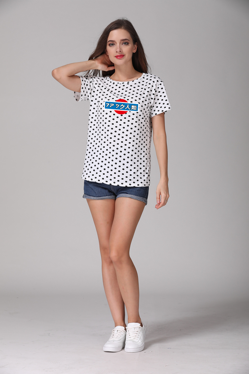 New-Fashion-Women39s-Summer-T-Shirt-Dots-Girls39-Basic-Bottoming-Polka-Dots-Printed-Short-Sleeve-Top-32620471999