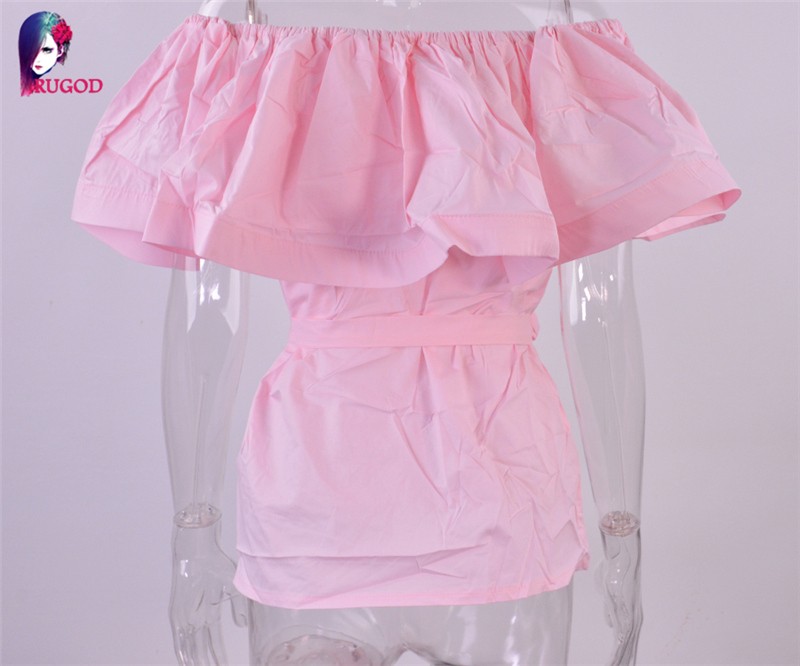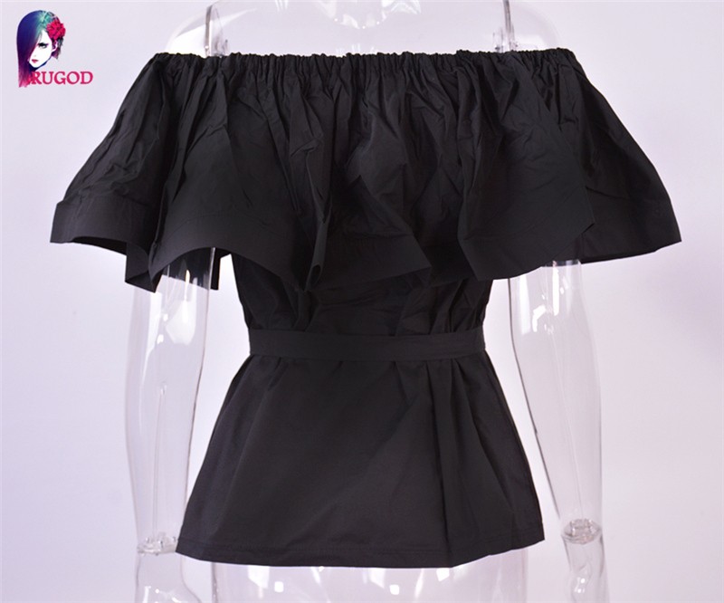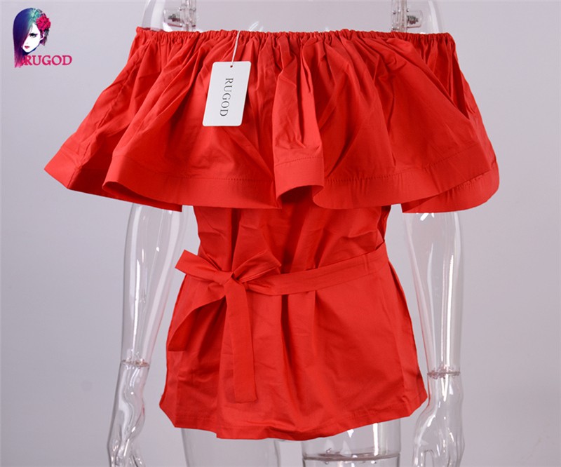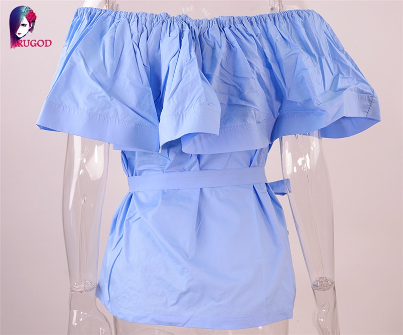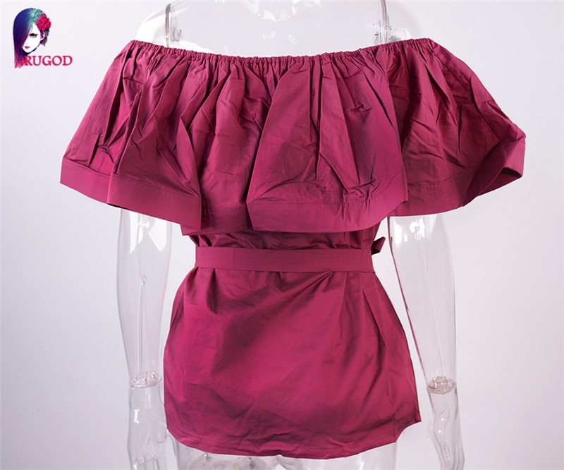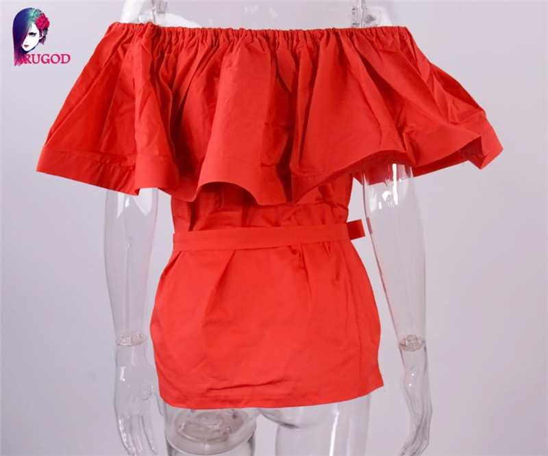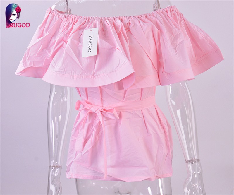 New Summer style 2017 Hot Slash Neck Tube Women Shirt with Ruffles Sexy Blusas Off shoulder beach tops party top with belt