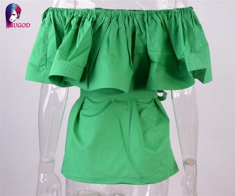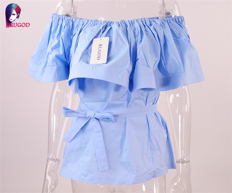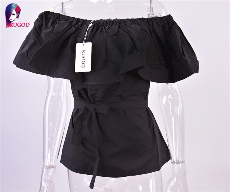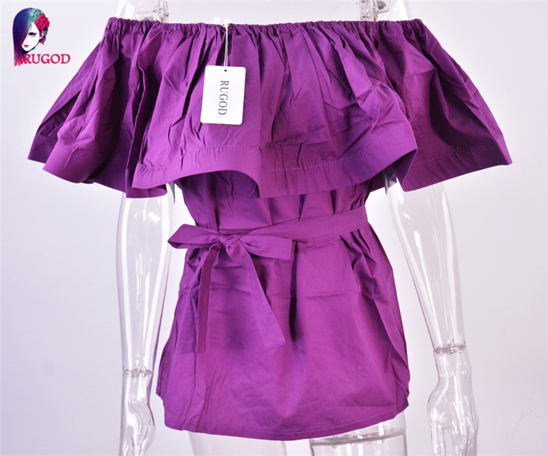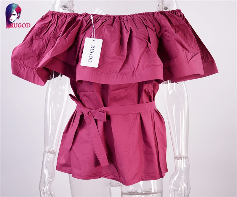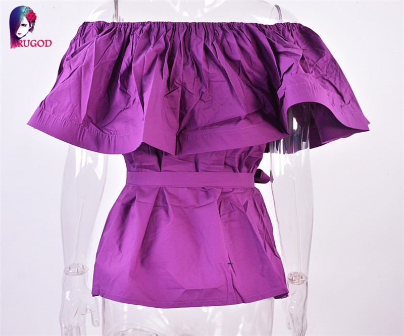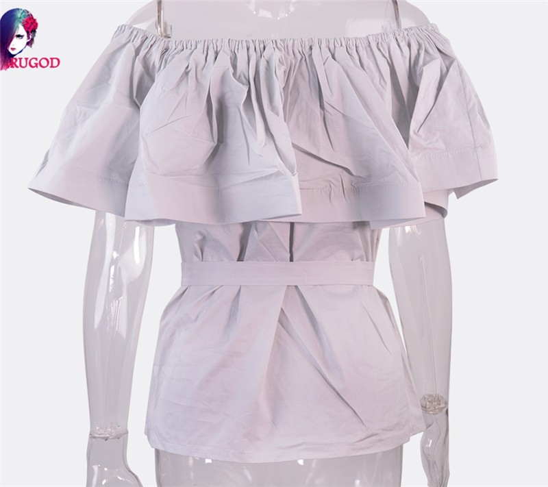 New Summer style 2017 Hot Slash Neck Tube Women Shirt with Ruffles Sexy Blusas Off shoulder beach tops party top with belt